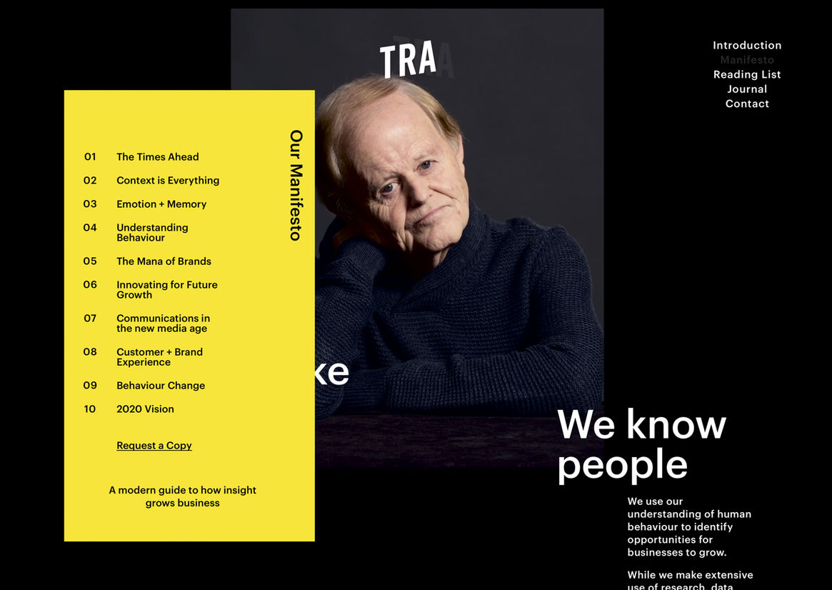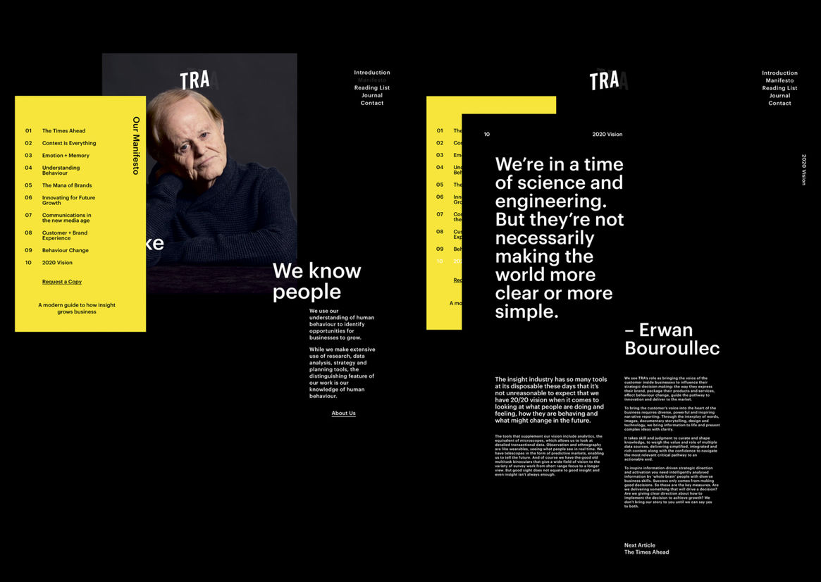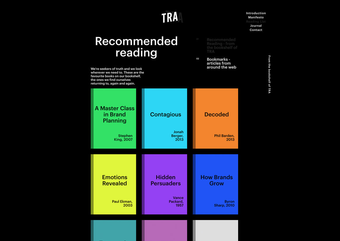 The TRA site strikes a perfect balance between usability and invention. Its Lynchian video backdrops are cold yet comforting, and its tangible navigational approach kept the judges digging ever deeper through its rich content. What a time to be alive, indeed.