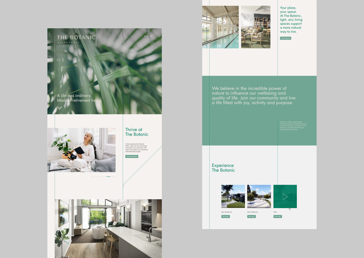 Because no Boomer (or anyone else we know of) ever walked into a retirement village and said “man, I’m looking forward to getting old”, intelligent developers Matvin Group asked us the question: What could a relevant future for living in the third age look like? We found our answers in one of the oldest lessons known; Nature. Specifically, Biophilia - harnessing the power of plants in a more universal way to support every level of human well being. Physical. Visual. Spatial. Spiritual - a 360degree model to inform greener principles across every moment of brand immersion, with the WELL Building Standard* at its foundation.