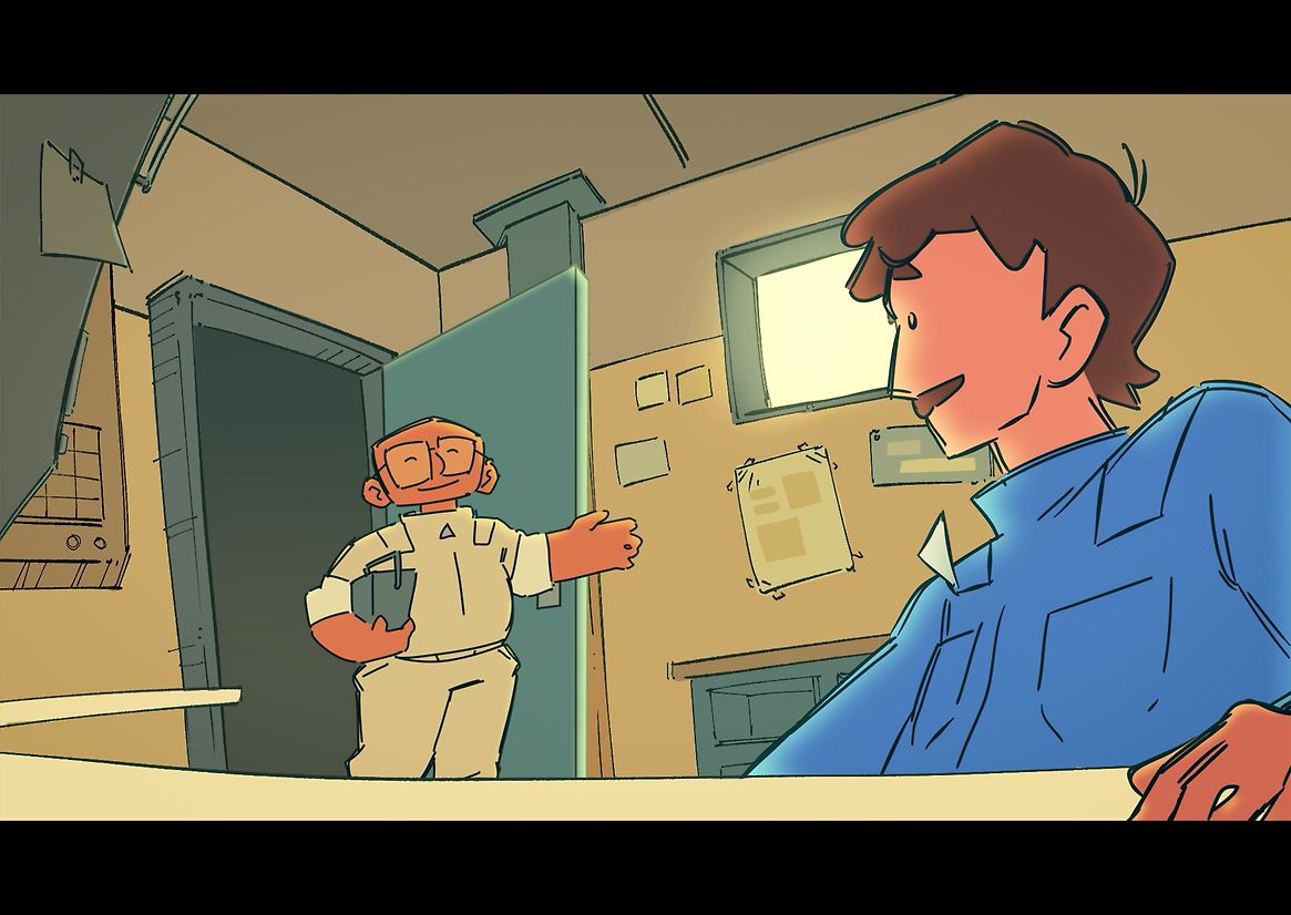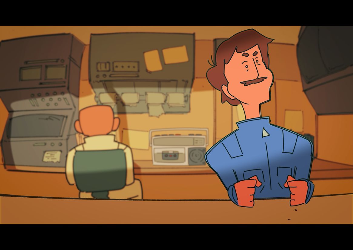 No More Vivaldi is a short 2D animated documentary that retells a true story from the 1980s, when the filmmaker’s father worked on an oil rig in the North Sea. In a cramped research unit, he and his partner John McAdam face long shifts, isolation, and one unexpected challenge: a cassette tape played on repeat until it drives him to the edge.