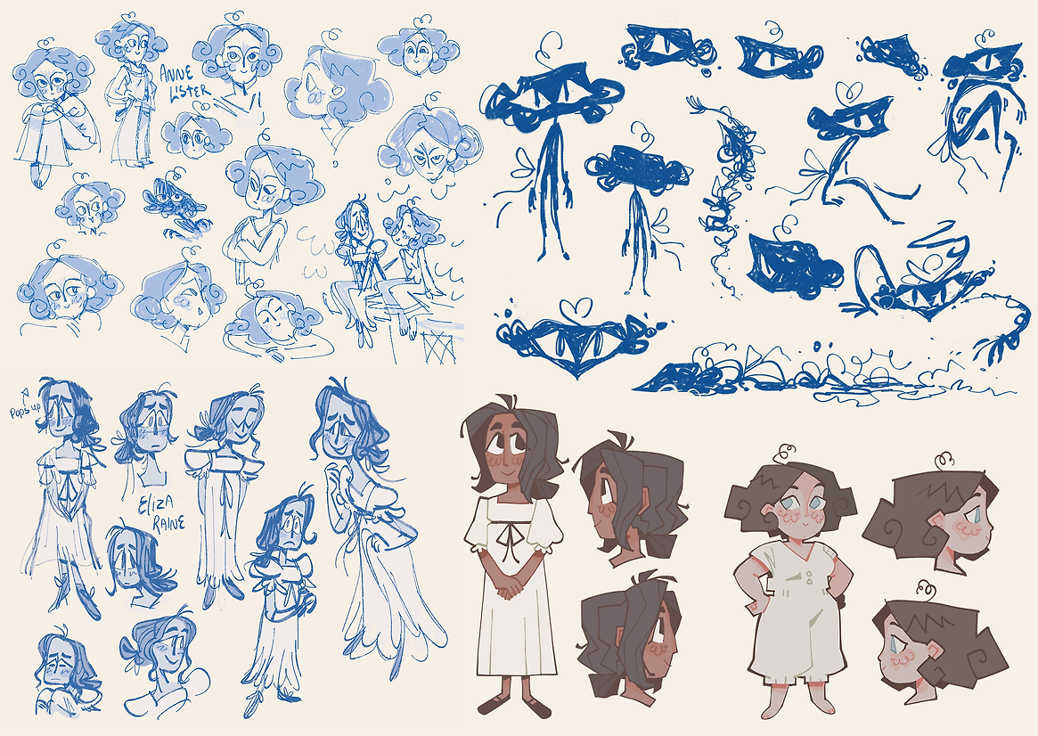 This is achieved through experimental animation techniques, utilising line work and colour as a narrative device. This work explores my feelings about coming to terms with my sexuality, as well as representing a part of LGBT+ history that was hidden for many, many years. While the narrative is ‘fantastical’ and abstract in nature, I reference history as much as possible in the character designs, location design and dialogue. I aim to highlight the true story the film is based on and honour the real Eliza Raine and Anne Lister, while also making it relatable to modern audiences.
