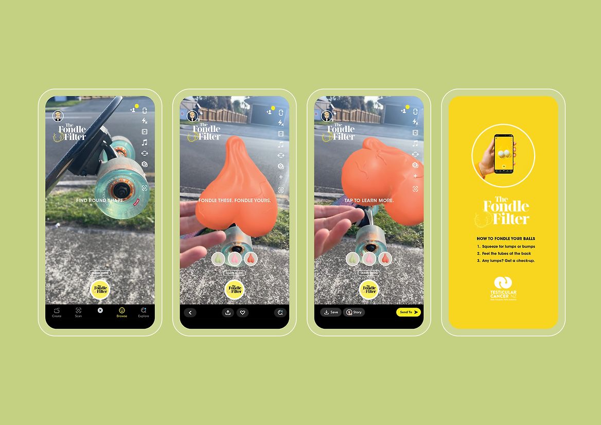 The Fondle Filter is a Snapchat AR lens that turns any ball-shaped object into testicles, encouraging guys to play with their own.