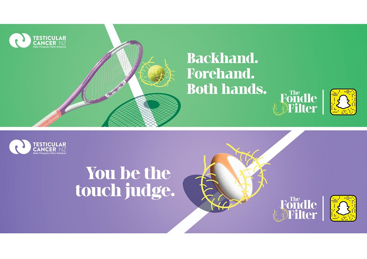 On billboards and posters, sports-ball imagery was used to have a laugh and create intrigue about what would be found on the Fondle Filter, while clearly acknowledging it was all about testicles.