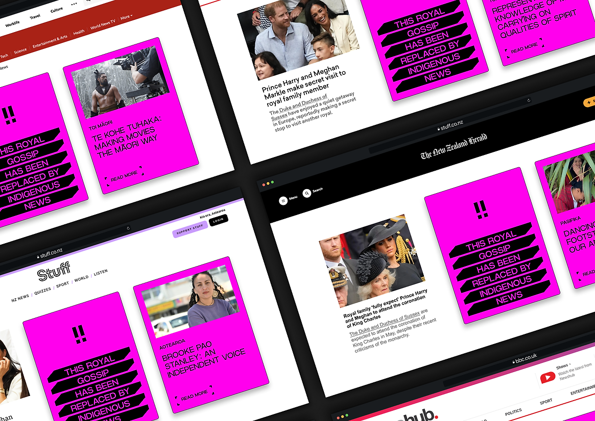 We tapped into a network of Māori media and used the plug-in to swap out every piece of royal news with articles from Indigenous journalists.