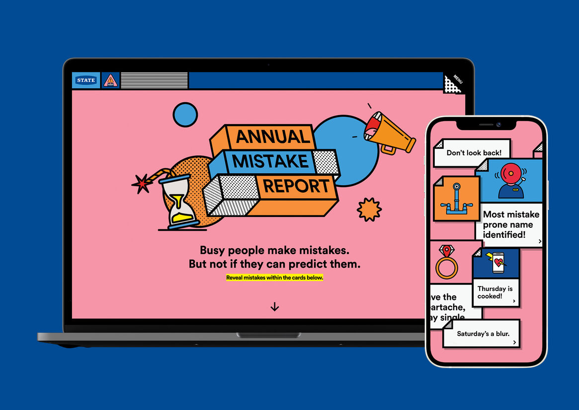 To create the report, State analysed over 4M+ data points from claims, weather, police and transport data to find ‘mistake’ patterns. A targeted campaign warned people of mistakes right before they made them, and directed them to The Mistake Report branded microsite.