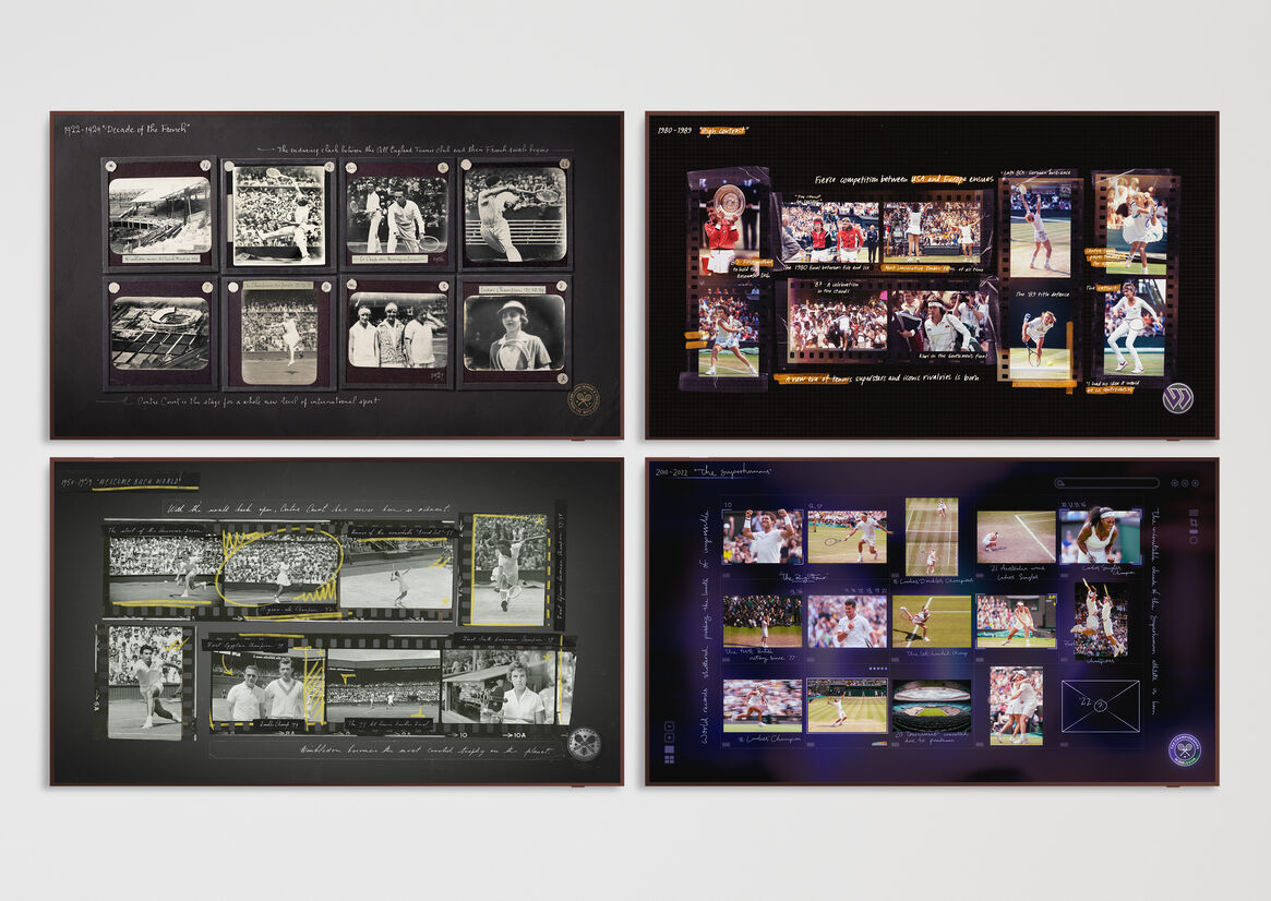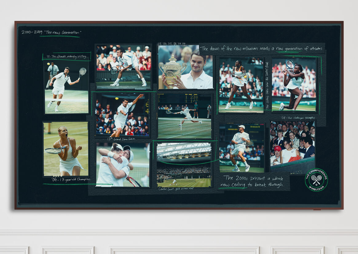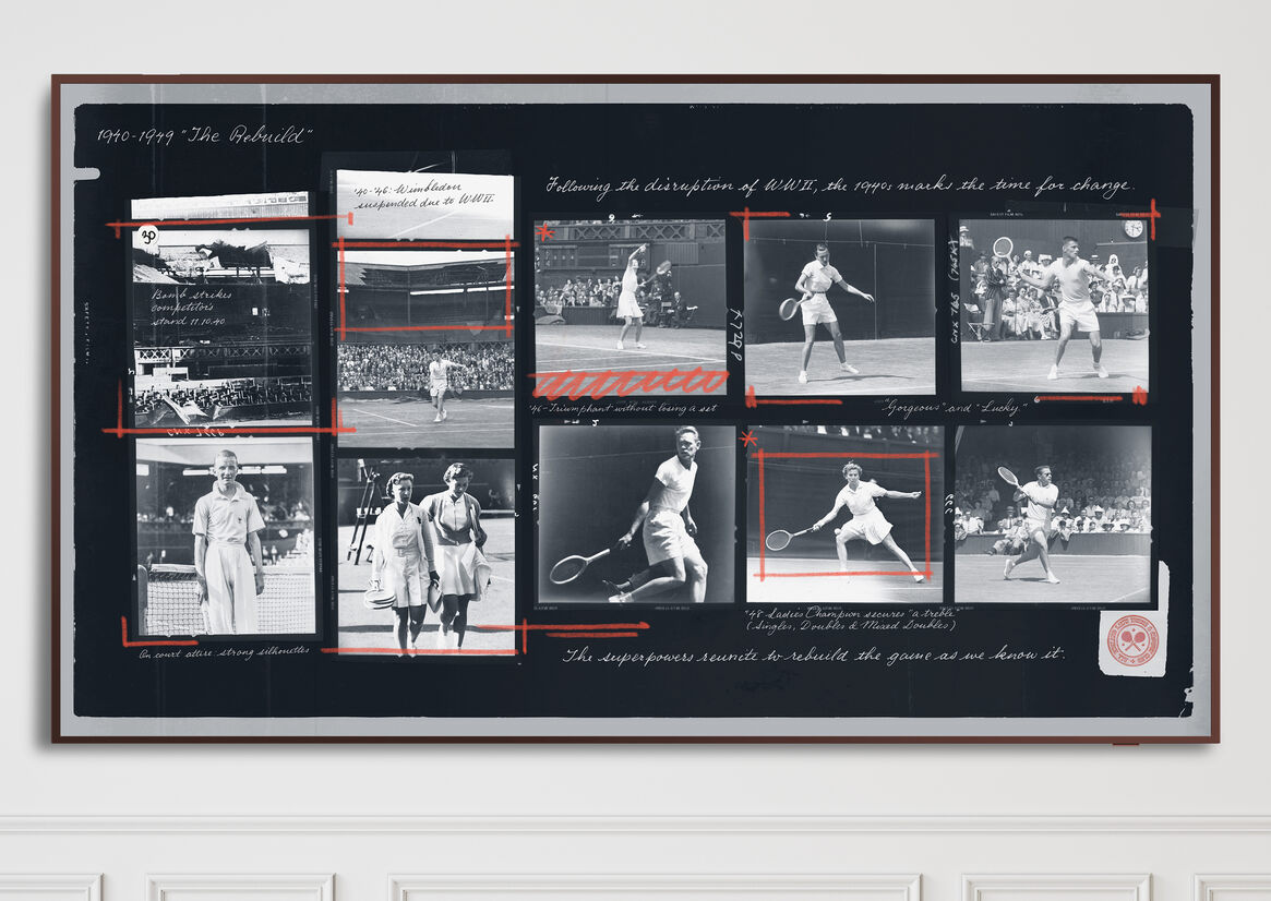 This was an ambitious project, distilling and sorting through multiple archives with hundreds of thousands of historic photographs to produce artworks akin to photo essays, each telling the most important Wimbledon stories.