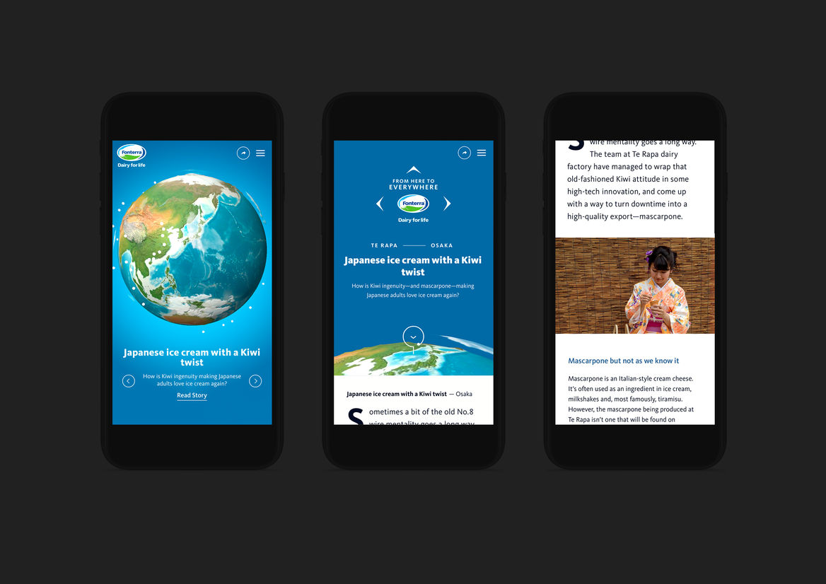 Digital Digital Campaigns Digital Products E-Commerce Websites (new 2024) Game Design Installation & Exhibition Large Scale Websites Small Scale Websites Student Digital User Experience (archived 2022) Animation Digital — formerly Interactive (2010–2019) Film Graphic Moving Image (archived 2025) Product Social Good Award Spatial Toitanga Value of Design Award User Experience Award (archived 2019) All categories Digital Campaigns Digital Products E-Commerce Websites (new 2024) Game Design Installation & Exhibition Large Scale Websites Small Scale Websites Student Digital User Experience (archived 2022) All years 2025 2024 2023 2022 2021 2020 2019 2018 2017 2016 2015 2014 2013 2012 2011 2010 Studio A-Z Gladeye 55 Fonterra 'From Here to Everywhere' 2017 Digital Campaigns Credits Pou Auaha / Creative Director Gladeye Client Fonterra