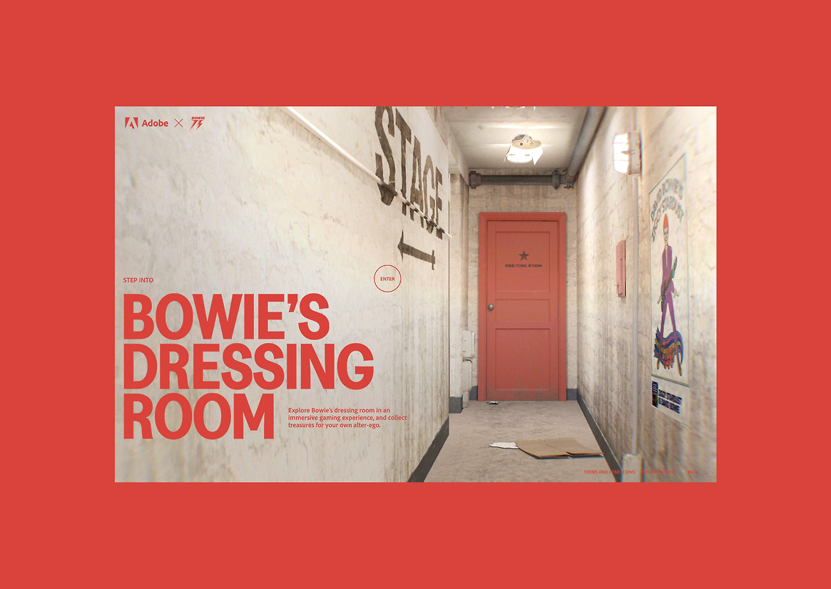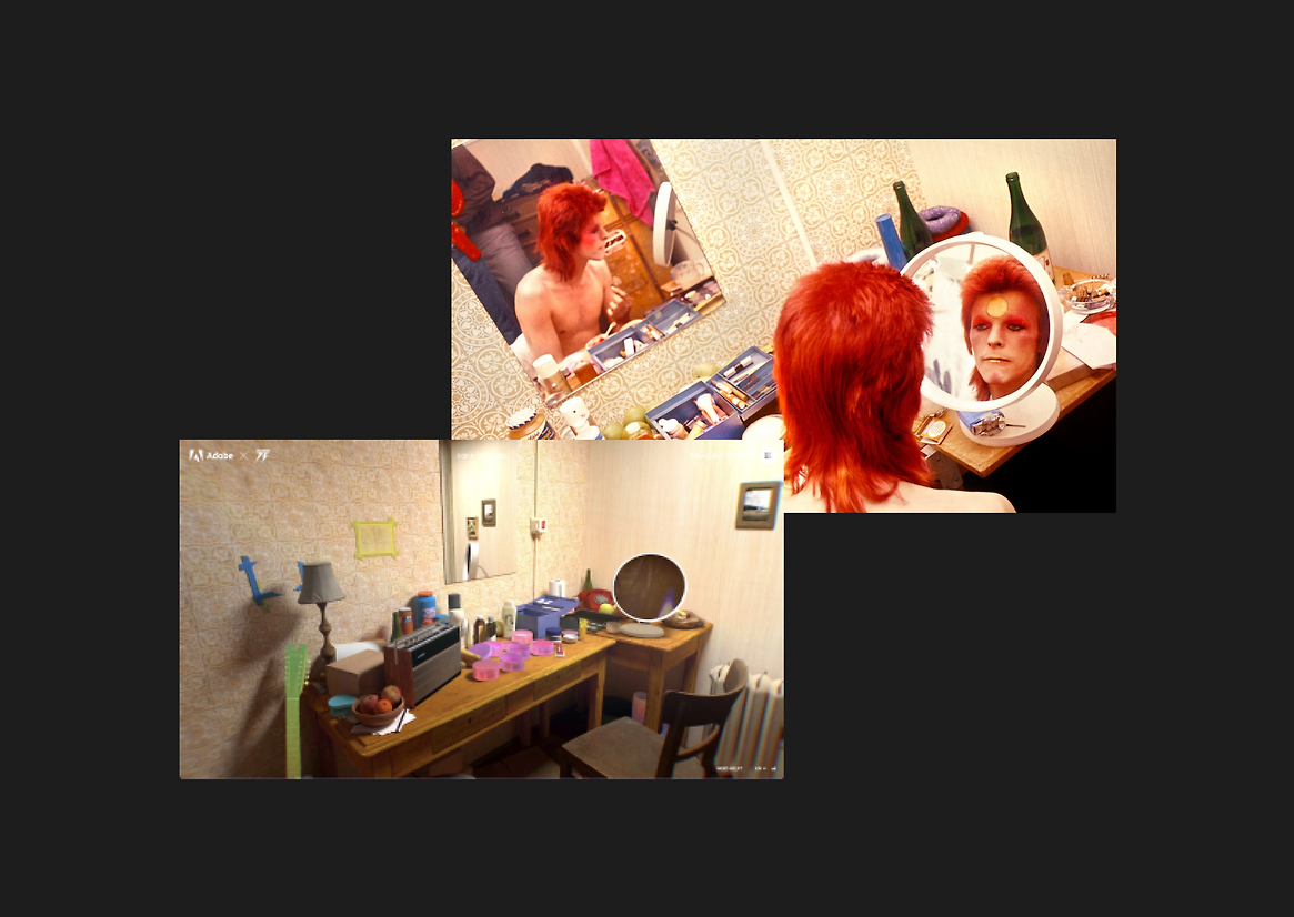 For David Bowie’s 75th birthday and 50 years of Ziggy Stardust, Adobe created a digital toolkit worthy of a Starman. As part of the celebration, we recreated Bowie’s dressing room: the physical anchor point to his creativity and the place where his alter ego Ziggy Stardust was born. The Virtual Dressing Room allows you to experience Bowie’s creative process and discover some hidden treasures.