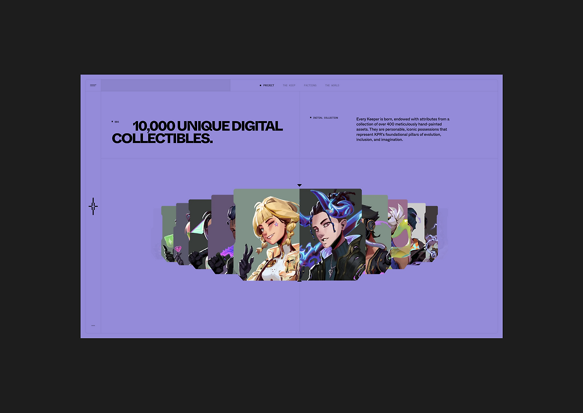 We partnered with KPR, a Web3 brand offering digital collectibles, to create a living world with a rich story that allows visitors to be active participants in the narrative. The aim was to establish KPR's relevance and credibility for enthusiasts and investors alike by building a platform that blended CG elements, storytelling, and interactive content. The multi-phase launch schedule engaged the community and built hype for the mint. The site proved to be a successful launchpad for KPR, firmly establishing it as a desirable new brand in the Web3 space.
