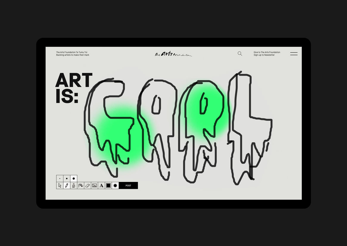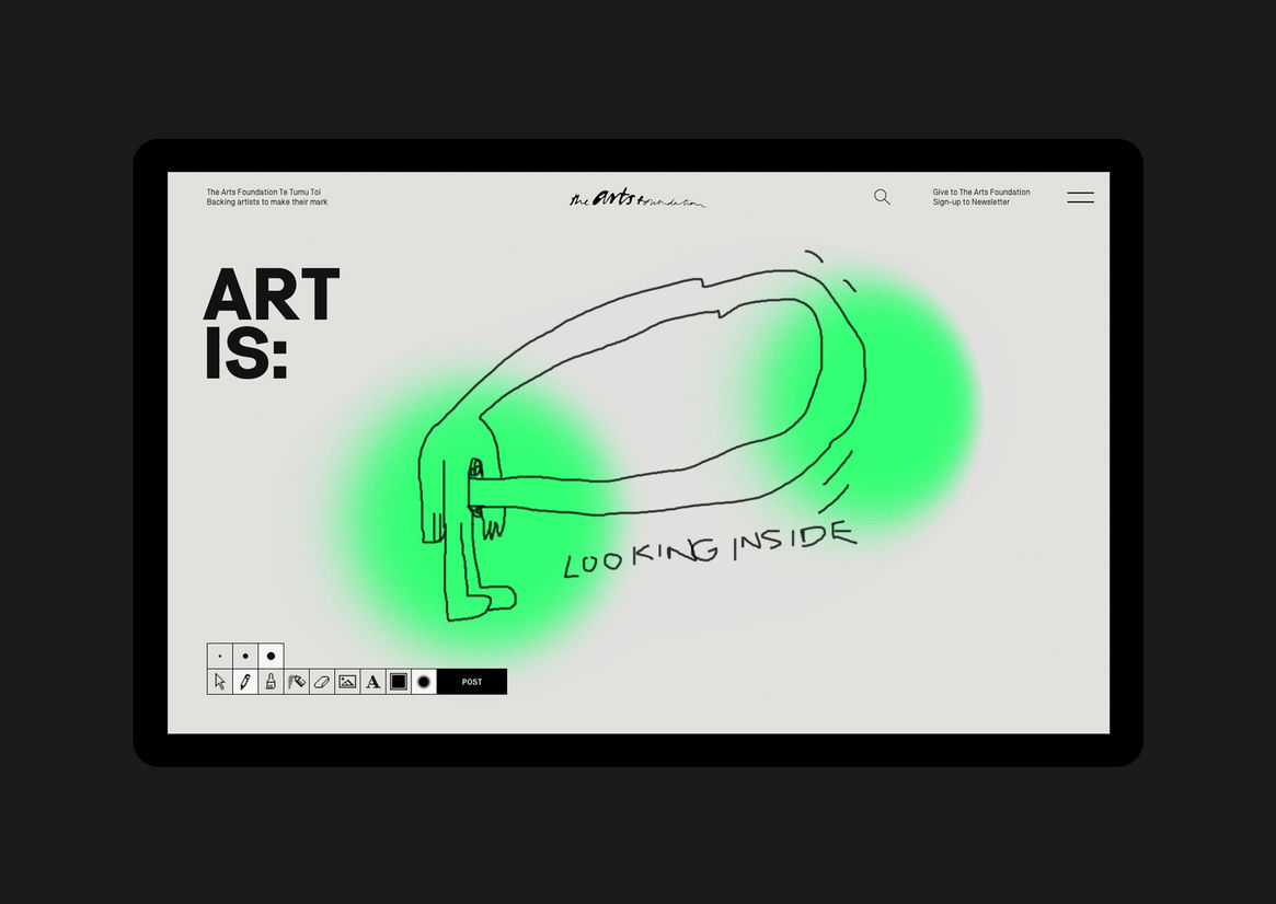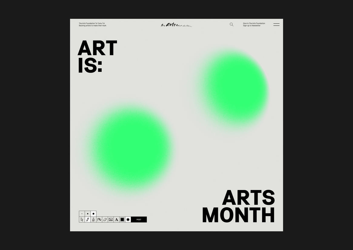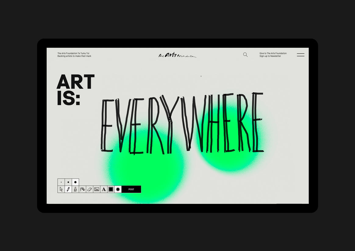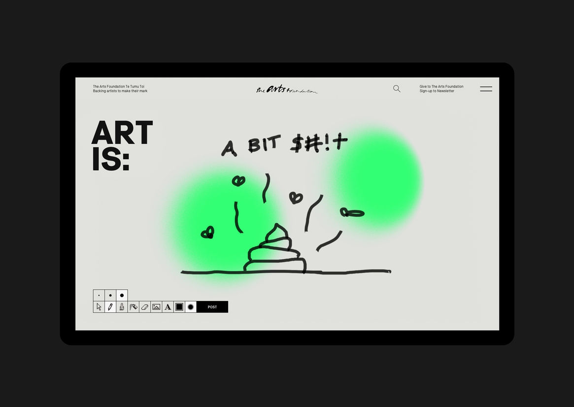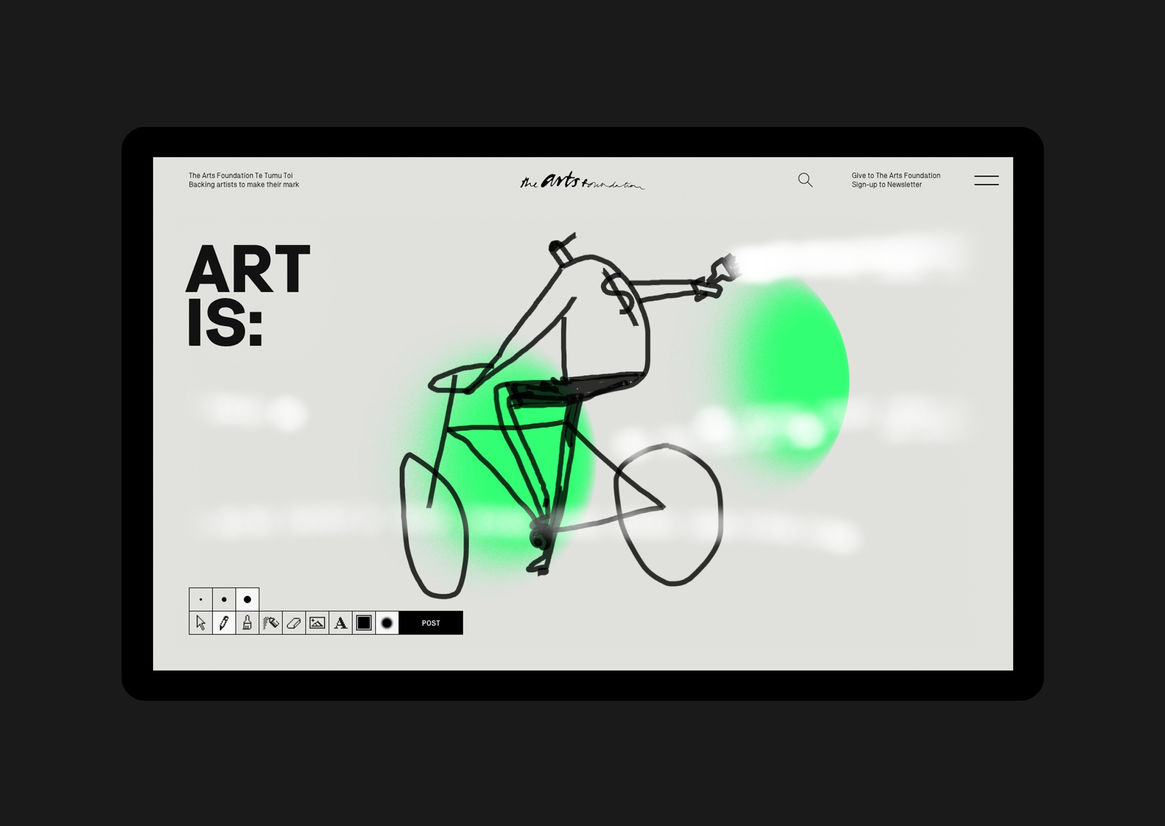 Art:is is conceptually strong and visually bold. The creative word device is simple and yet impactful. The online participatory drawing aspect of the project was significant. Leadership and advocacy for a thriving arts sector are crucial, the arts foundation has taken this on their mantle in the digital space. Art:is everything. Art:is life. Art:is change.