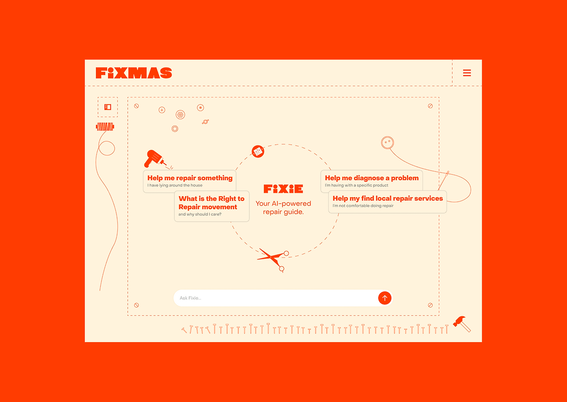 To do this, we created Fixmas, a festive-theme repair toolkit powered by Fixie, an AI chatbot designed to facilitate the step-by-step repair of almost any consumer product.