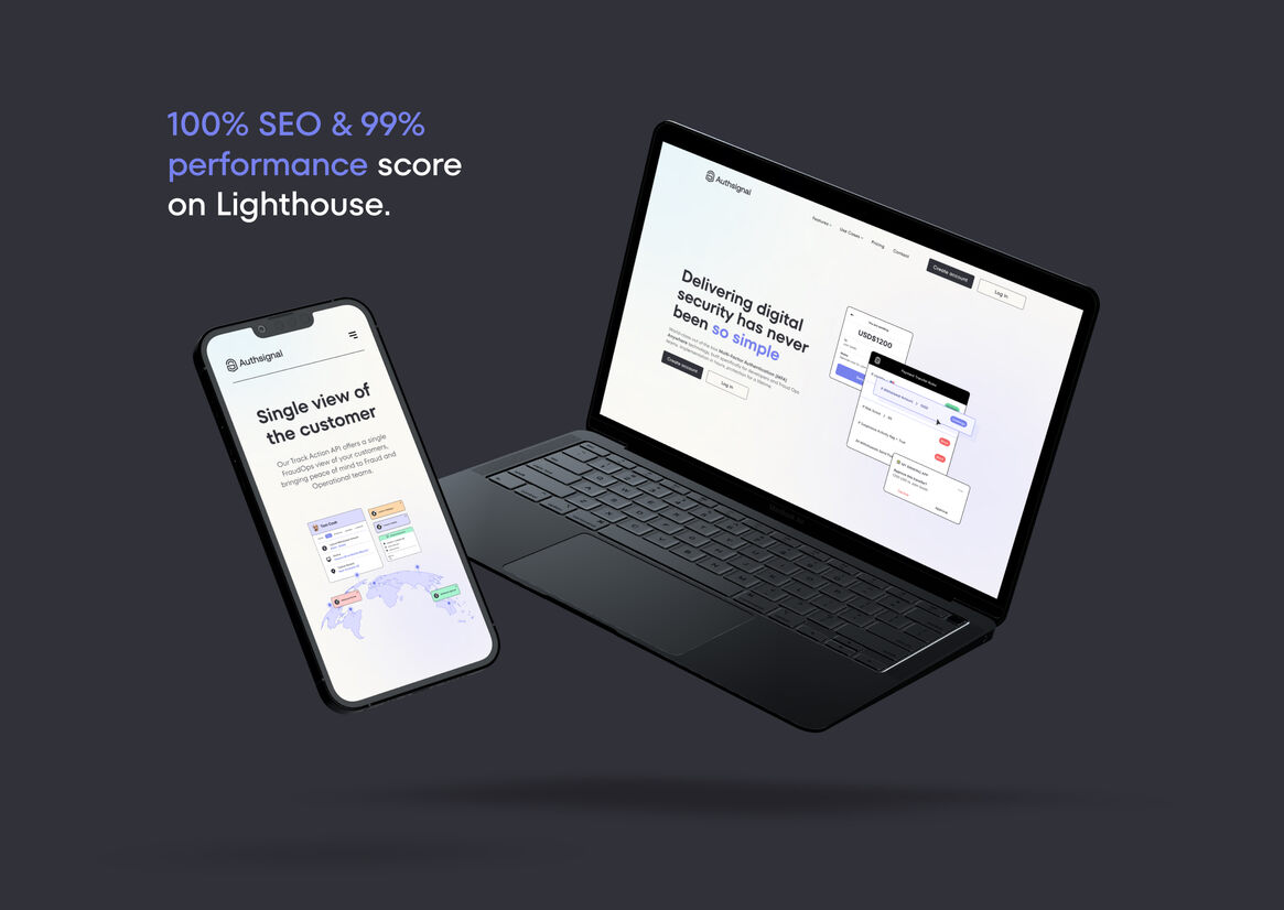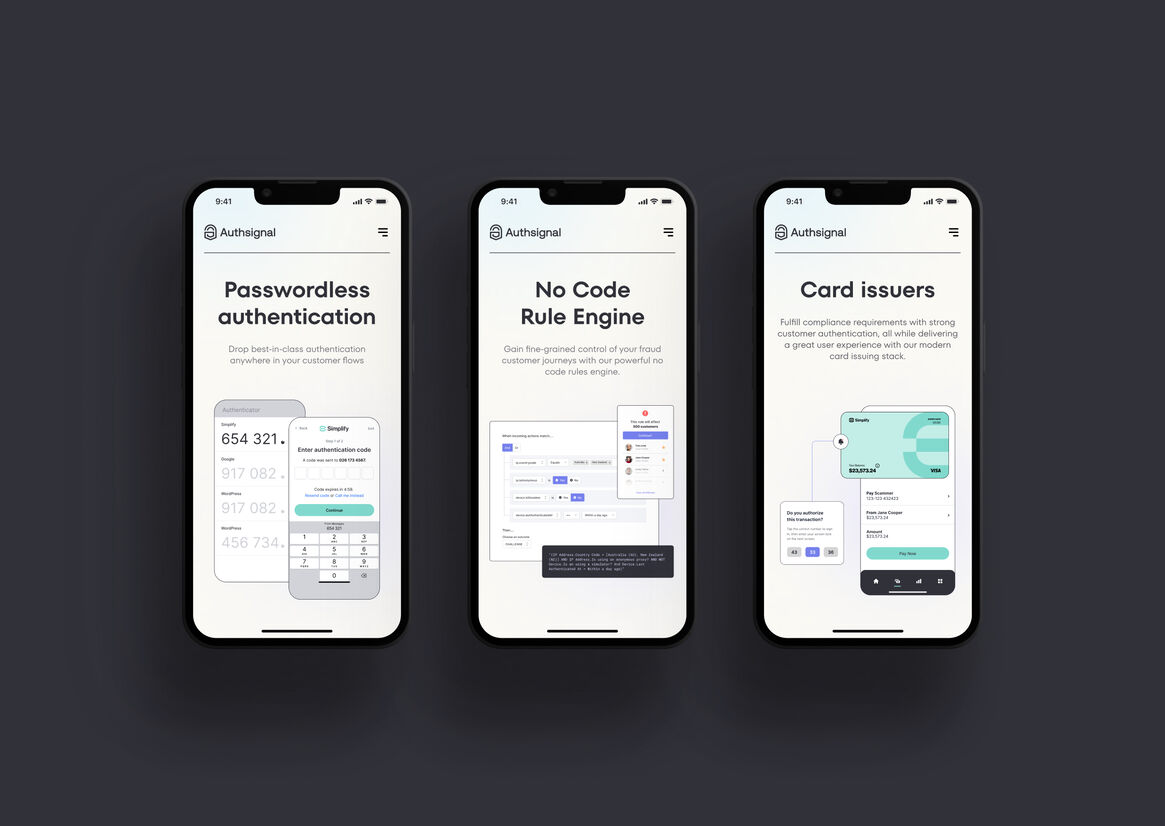 The marketing site is the louder, more confident of the three. Its purpose is to introduce Authsignal and enable businesses to discover how it can help them.