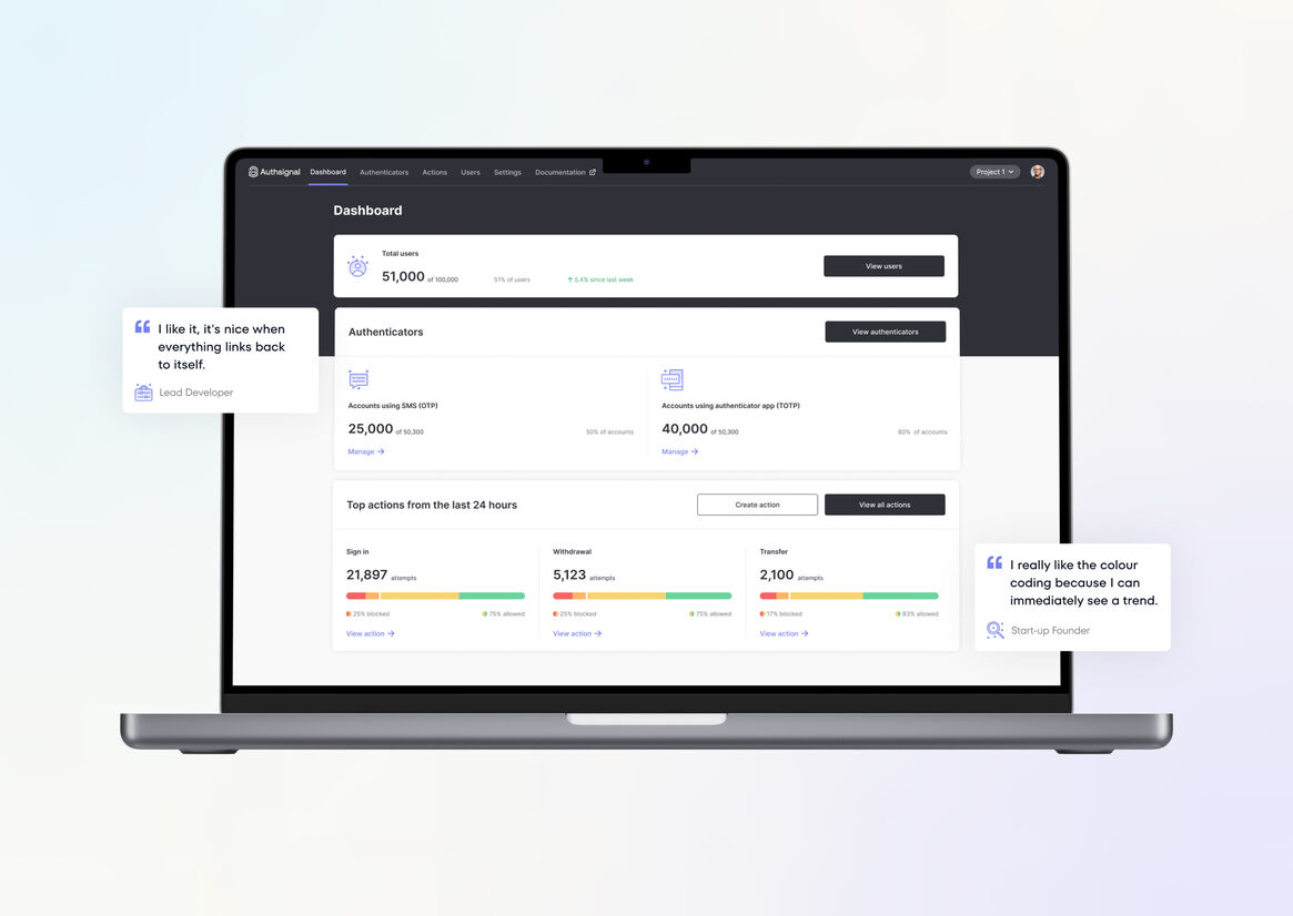 The admin portal is the powerhouse operating behind the scenes, where Developers can configure and customise security features. To do this requires no code, and Authsignal offers extensive documentation to guide them through the process. Once implemented, businesses can use insights to identify suspicious patterns and prevent fraud.