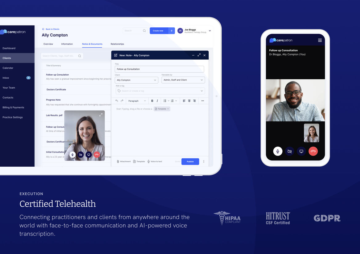We also packed Carepatron with powerful tools, like voice transcription backed by a custom-built Healthcare Terminology library, workflow automation, and HIPAA-certified telehealth, delivering a product that truly reflects how practitioners work.