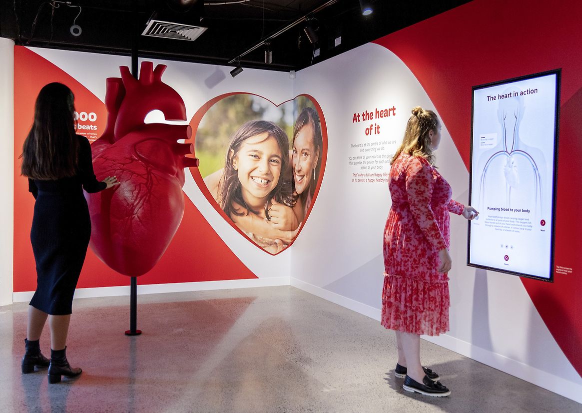 The Heart Foundation (THF) approached us to create an enhanced visitor experience for their Auckland premises. They wanted an experience to connect with their communities, fostering open and informed conversations about heart health. The experience needed to include a strong educational aspect that demonstrated how the heart works including the cause, and treatment, of common conditions. Our key challenge was to balance the need for medically accurate information, with the simplicity required to allow audiences to understand and engage.