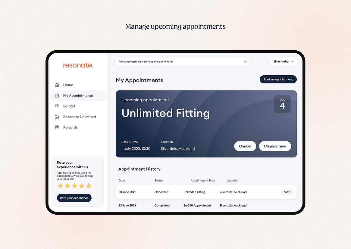 The Resonate dashboard, developed in collaboration with Resonate Health, is a groundbreaking experience in the audiological space. Alongside the seamless booking experience, we are proud to have created an end-to-end clinical experience within the dashboard. This solution simplifies the workflow for clinicians, allowing them to spend more quality time with patients and less time doing data entry. By prioritising simplicity and efficiency, Resonate Health and our team have set a new benchmark in the industry, enhancing the patient-clinician relationship. We are honoured to have been part of this transformative journey and remain committed to our shared vision of making hearing care accessible for every kiwi.