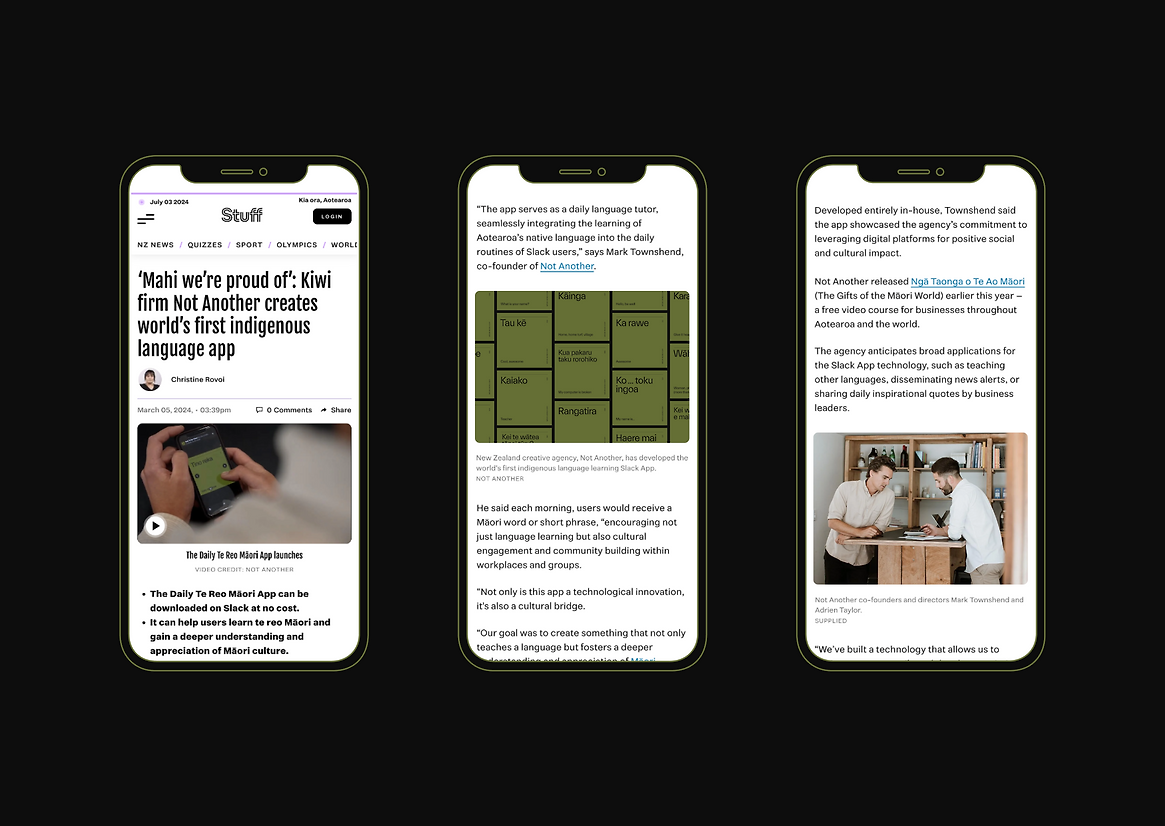 The Daily Te Reo Māori App is the world’s first ever indigenous language app on Slack, produced in-house by Not Another™.