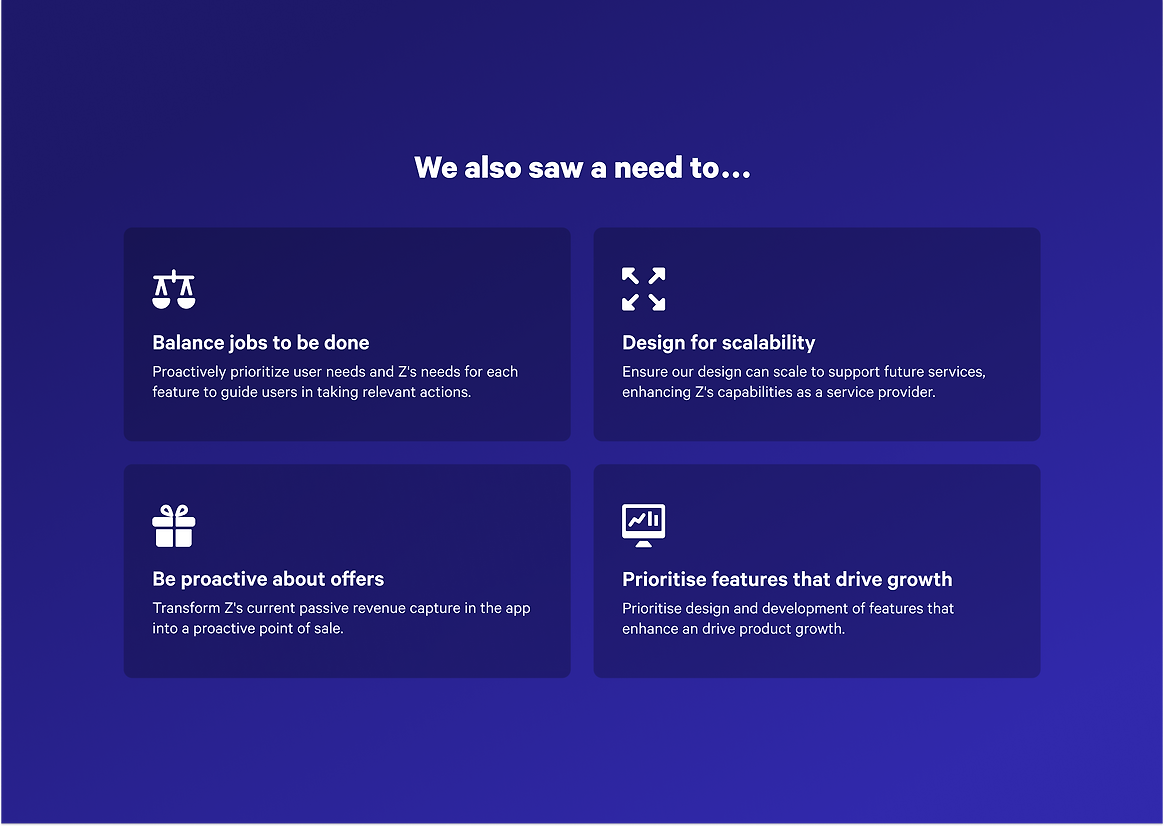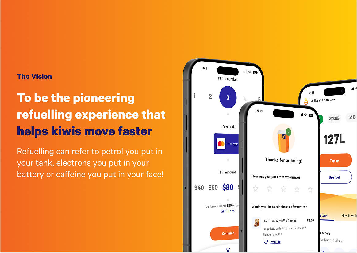 The opportunity lay in reimagining the entire app experience to align with Z Energy's vision of pioneering a faster refuelling experience for Kiwis. This vision extended beyond traditional fuel to include electric vehicle charging and even coffee purchases, presenting a chance to create a versatile, user-friendly platform that could adapt to changing consumer needs and emerging technologies.