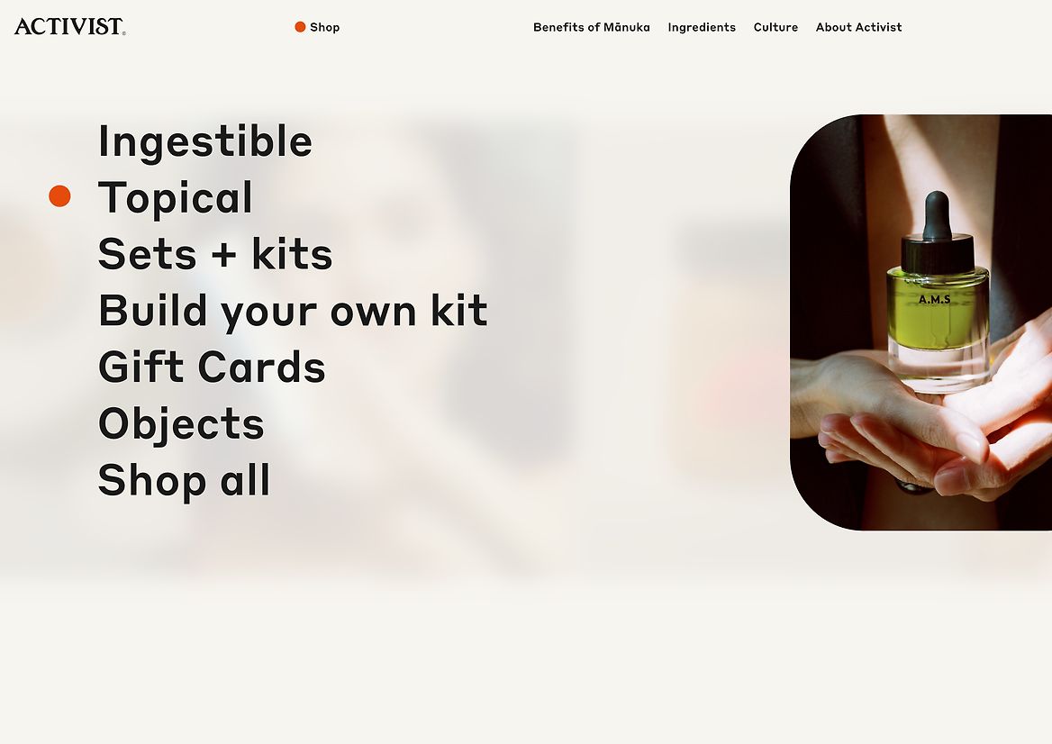 Digital Digital Campaigns Digital Products E-Commerce Websites (new 2024) Game Design Installation & Exhibition Large Scale Websites Small Scale Websites Student Digital User Experience (archived 2022) Animation Digital — formerly Interactive (2010–2019) Film Graphic Moving Image (archived 2025) Product Social Good Award Spatial Toitanga Value of Design Award User Experience Award (archived 2019) All categories Digital Campaigns Digital Products E-Commerce Websites (new 2024) Game Design Installation & Exhibition Large Scale Websites Small Scale Websites Student Digital User Experience (archived 2022) All years 2025 2024 2023 2022 2021 2020 2019 2018 2017 2016 2015 2014 2013 2012 2011 2010 Studio A-Z Seachange 83 Made Studio 5 Activist 2025 E-Commerce Websites (new 2024) Credits Pou Auaha / Creative Directors Amanda Gaskin, Tim Donaldson, Ella Gaddum Ngā Kaimahi / Team Members Lily Savage, Nicole McClure Client Activist Mānuka