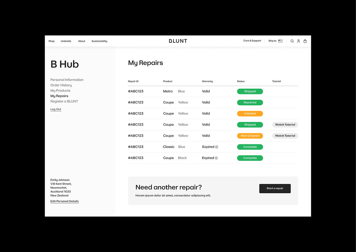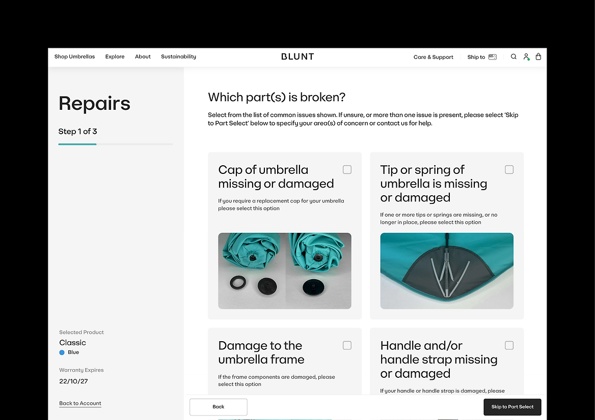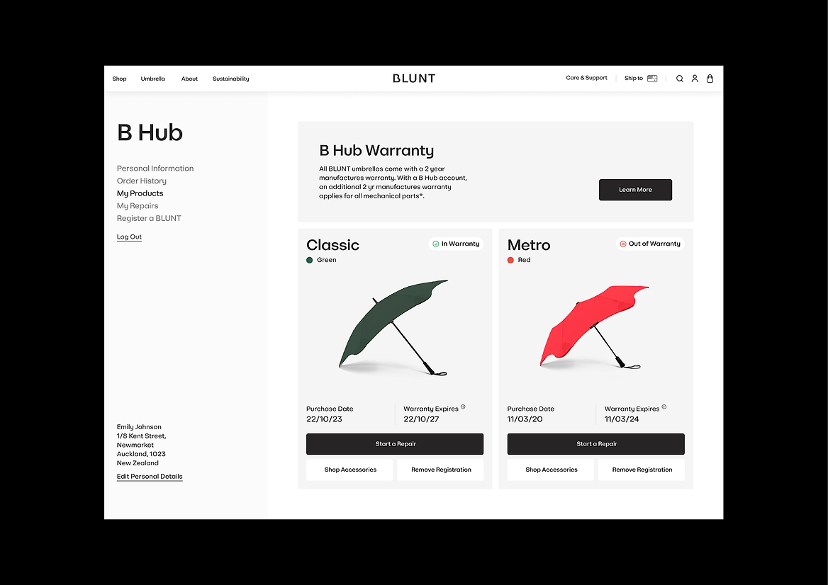Digital Digital Campaigns Digital Products E-Commerce Websites (new 2024) Game Design Installation & Exhibition Large Scale Websites Small Scale Websites Student Digital User Experience (archived 2022) Animation Digital — formerly Interactive (2010–2019) Film Graphic Moving Image (archived 2025) Product Social Good Award Spatial Toitanga Value of Design Award User Experience Award (archived 2019) All categories Digital Campaigns Digital Products E-Commerce Websites (new 2024) Game Design Installation & Exhibition Large Scale Websites Small Scale Websites Student Digital User Experience (archived 2022) All years 2025 2024 2023 2022 2021 2020 2019 2018 2017 2016 2015 2014 2013 2012 2011 2010 Studio A-Z Studio Almond 28 Blunt Repairs Finalist 2025 E-Commerce Websites (new 2024) Credits Pou Auaha / Creative Director Studio Almond Client Blunt Umbrellas