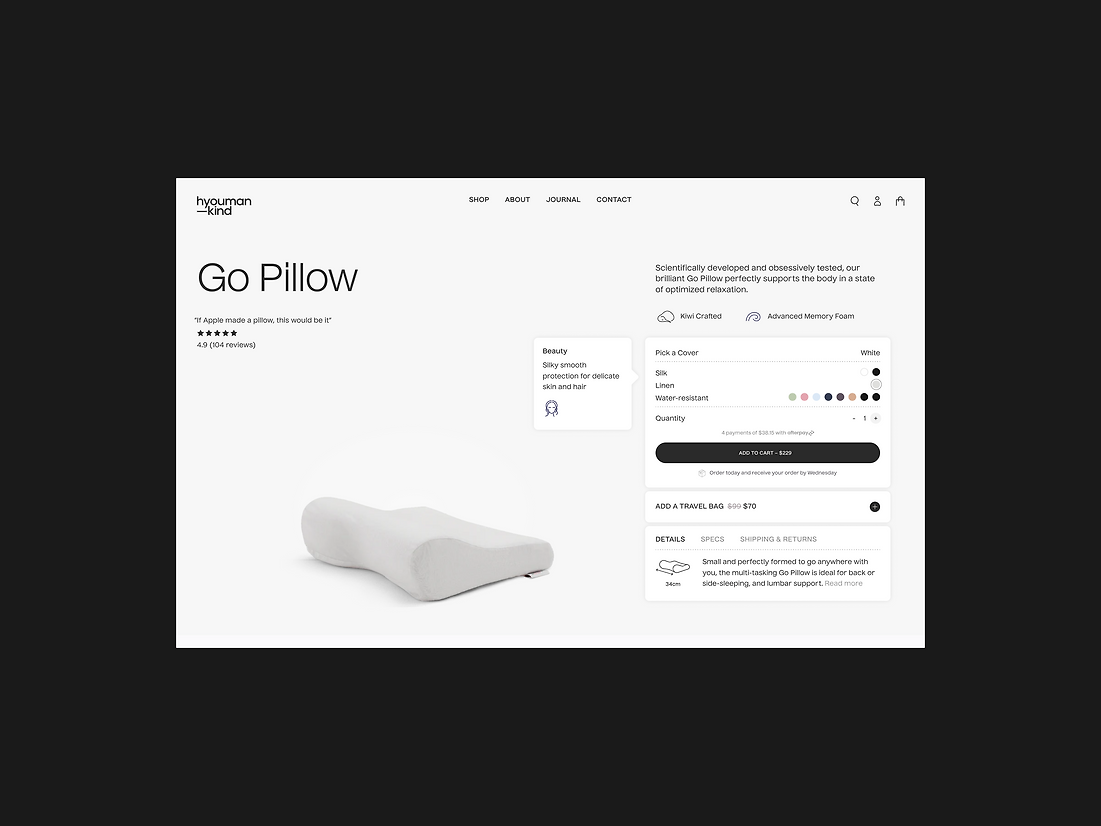 With slow-release memory foam and an ergonomic design that took 10 years of research and development to create, Hyoumankind founder, Steph Wyborn reinvented the pillow.
