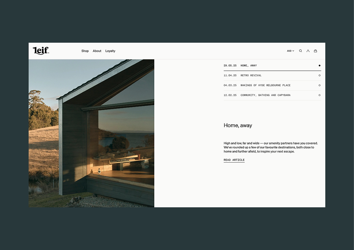 Digital Digital Campaigns Digital Products E-Commerce Websites (new 2024) Game Design Installation & Exhibition Large Scale Websites Small Scale Websites Student Digital User Experience (archived 2022) Animation Digital — formerly Interactive (2010–2019) Film Graphic Moving Image (archived 2025) Product Social Good Award Spatial Toitanga Value of Design Award User Experience Award (archived 2019) All categories Digital Campaigns Digital Products E-Commerce Websites (new 2024) Game Design Installation & Exhibition Large Scale Websites Small Scale Websites Student Digital User Experience (archived 2022) All years 2025 2024 2023 2022 2021 2020 2019 2018 2017 2016 2015 2014 2013 2012 2011 2010 Studio A-Z Studio Almond 28 Leif 2025 E-Commerce Websites (new 2024) Credits Pou Auaha / Creative Director Studio Almond Client Leif