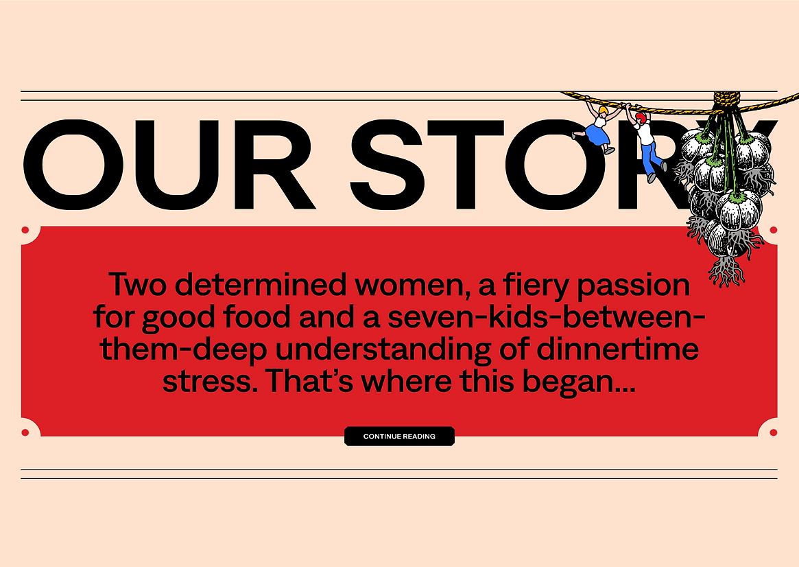 The website redesign was driven by a rejection of “mumsy” category conventions and the brand's bold counter-culture attitude. It was crucial the website reflected this defiance by providing simple, yet personality-filled communication, and an efficient shop navigation that supported their belief in taking the stress out of dinnertime.