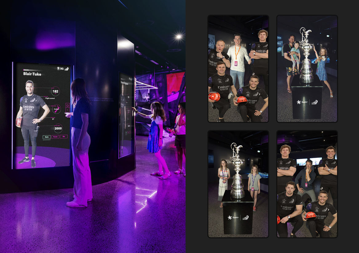 The Meet the Team screens enabled immediate AR selfies with the legends of Emirates Team New Zealand or the Auld Mug itself.