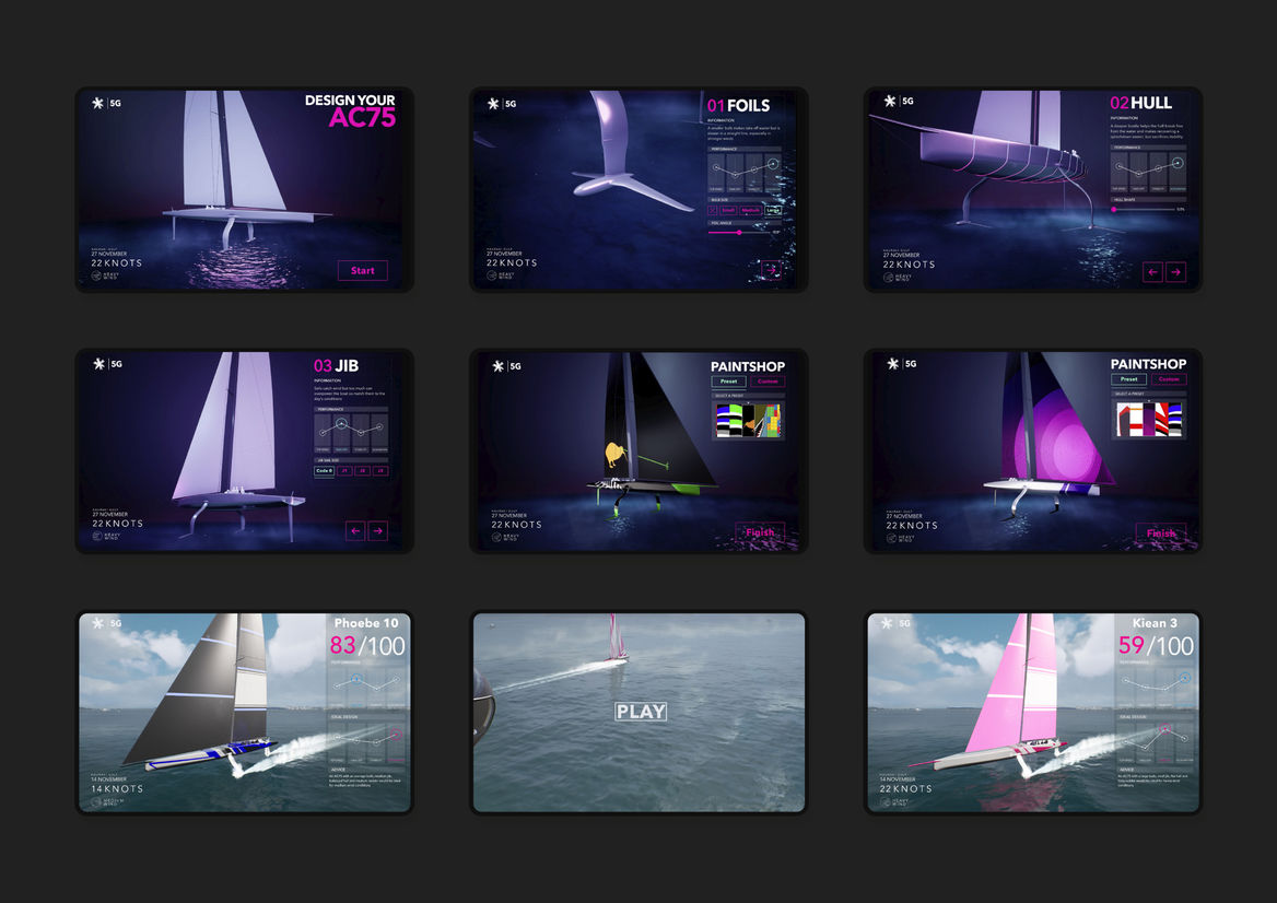 Comprising seven different zones, people could feel, create and learn about 5G in the context of one of our national sports – sailing. The various experiences and simulators brought to life the different benefits of 5G – speed, low latency and mass connectivity, intersecting with sailing knowledge like tides, wind, foiling, boat design and getting to know the team members.