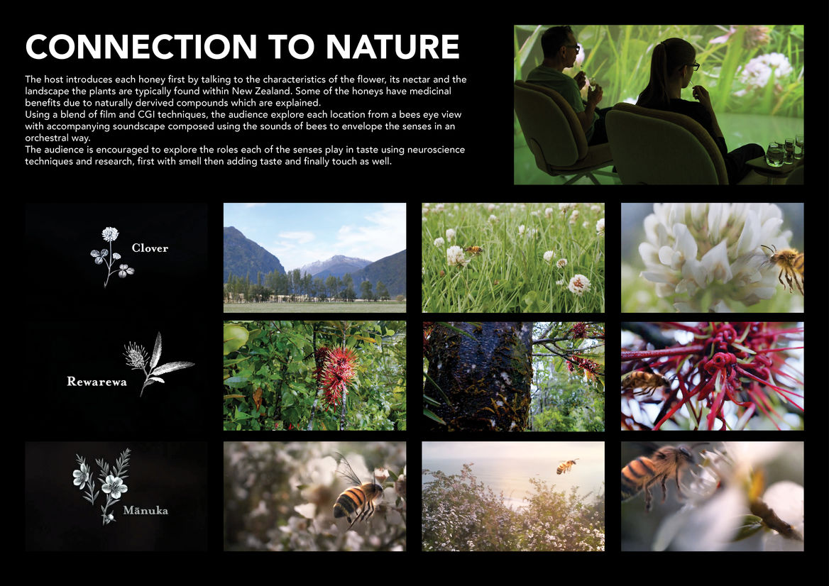 We created a 30 minute sensploration honey tasting to connect people to nature and educate them on the health benefits of the honey through an immersive journey from a bees eye view.