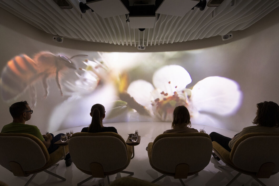 The multi sensory exhibition takes place in a custom designed boutique 180 degree theatre and is hosted by a beekeeper.