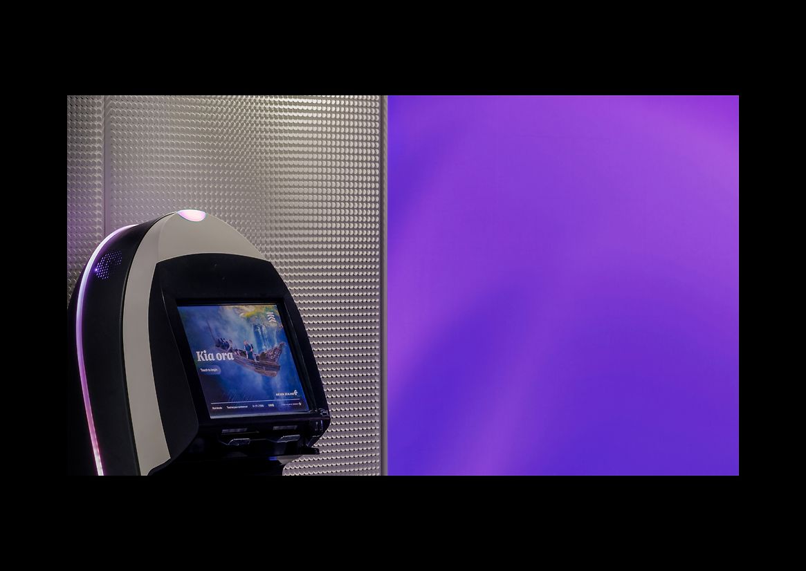 Located within Air New Zealand’s Premium Check-in area at Auckland Airport, ‘Passage’ is displayed on a gigantic 12m wide LED screen wall. The artwork reflects the journey of passengers across timezones through serene vapour trails casting light throughout the space. The vapours multiply and echo to create feather-like formations referencing Aotearoa’s native bird life. Sweeping across the screen like stage curtains, breathing from left to right, the vapours guide passengers from check-in to the spaces beyond. 'Passage' encourages passengers to take a moment of pause and appreciate the wonders of the journey itself.