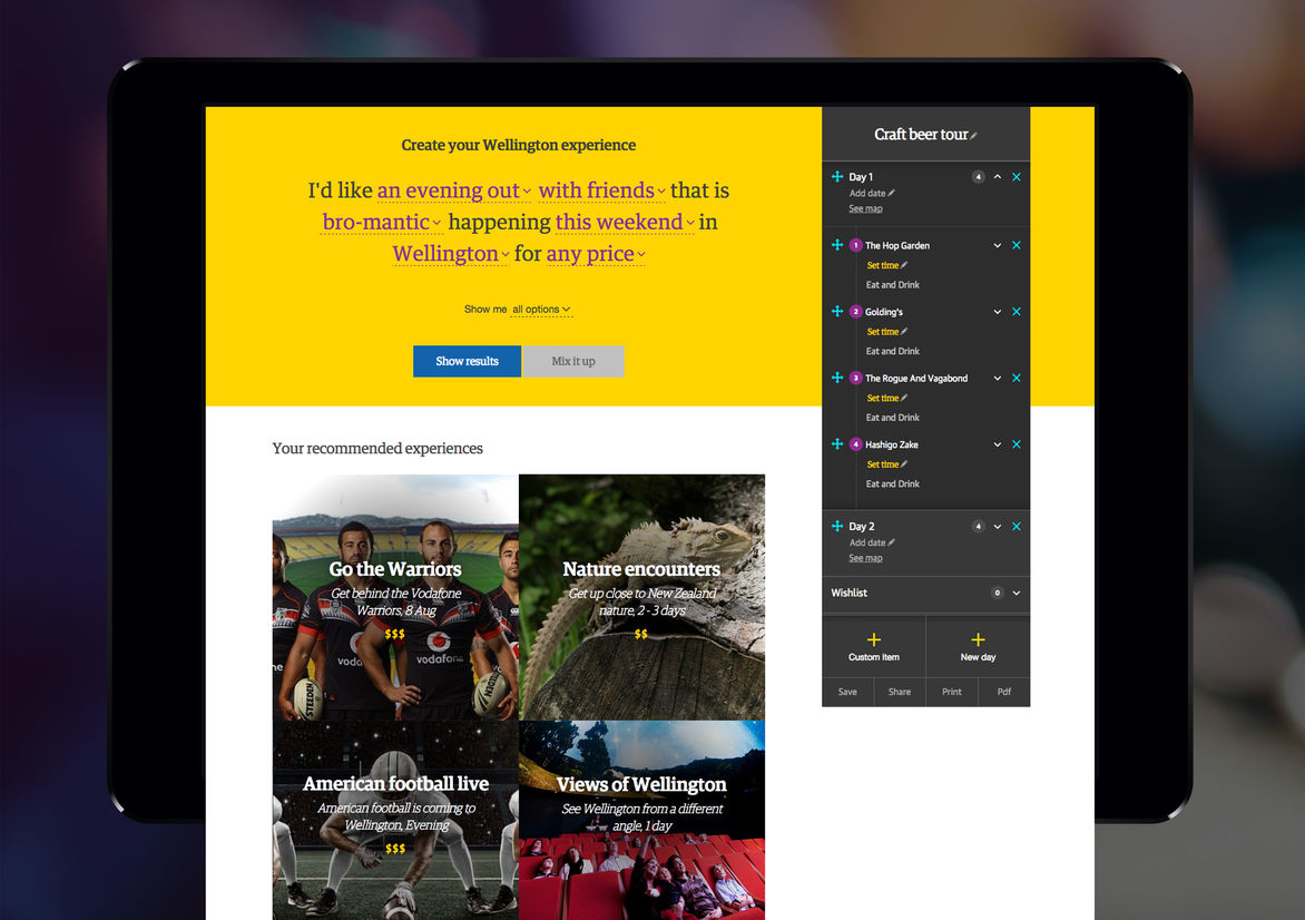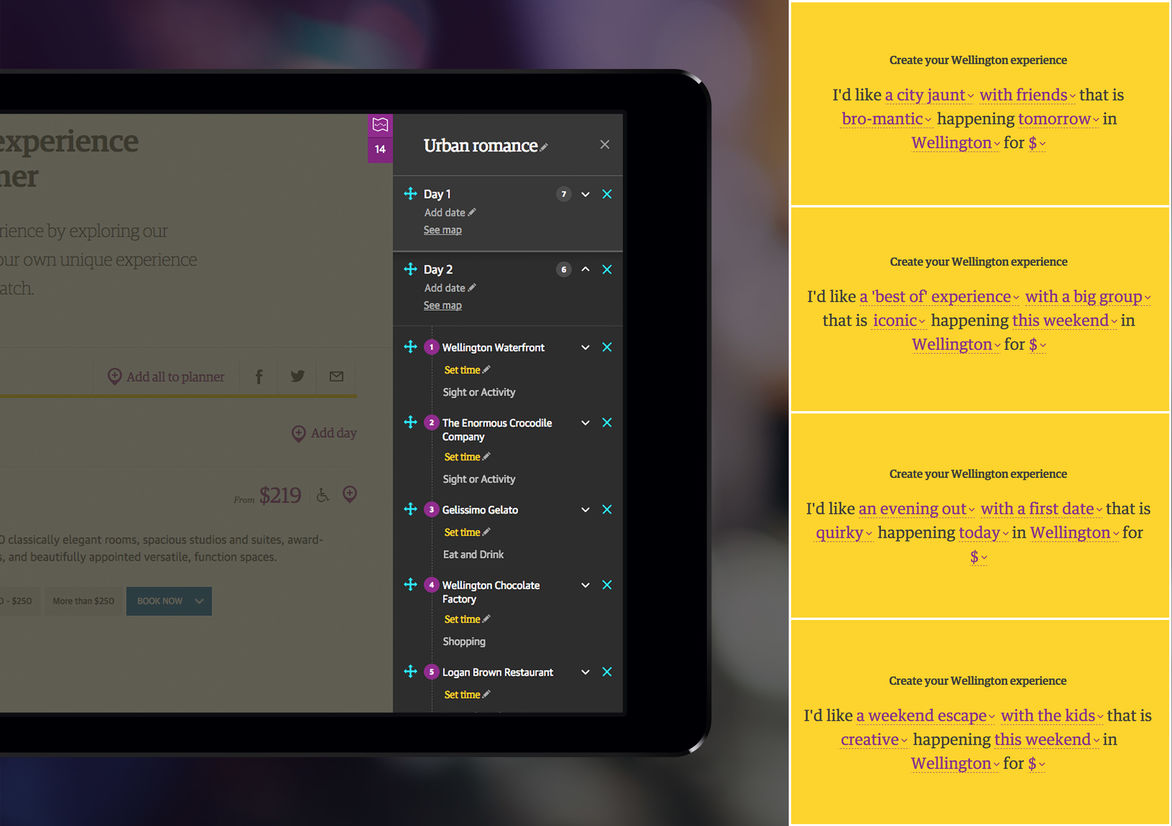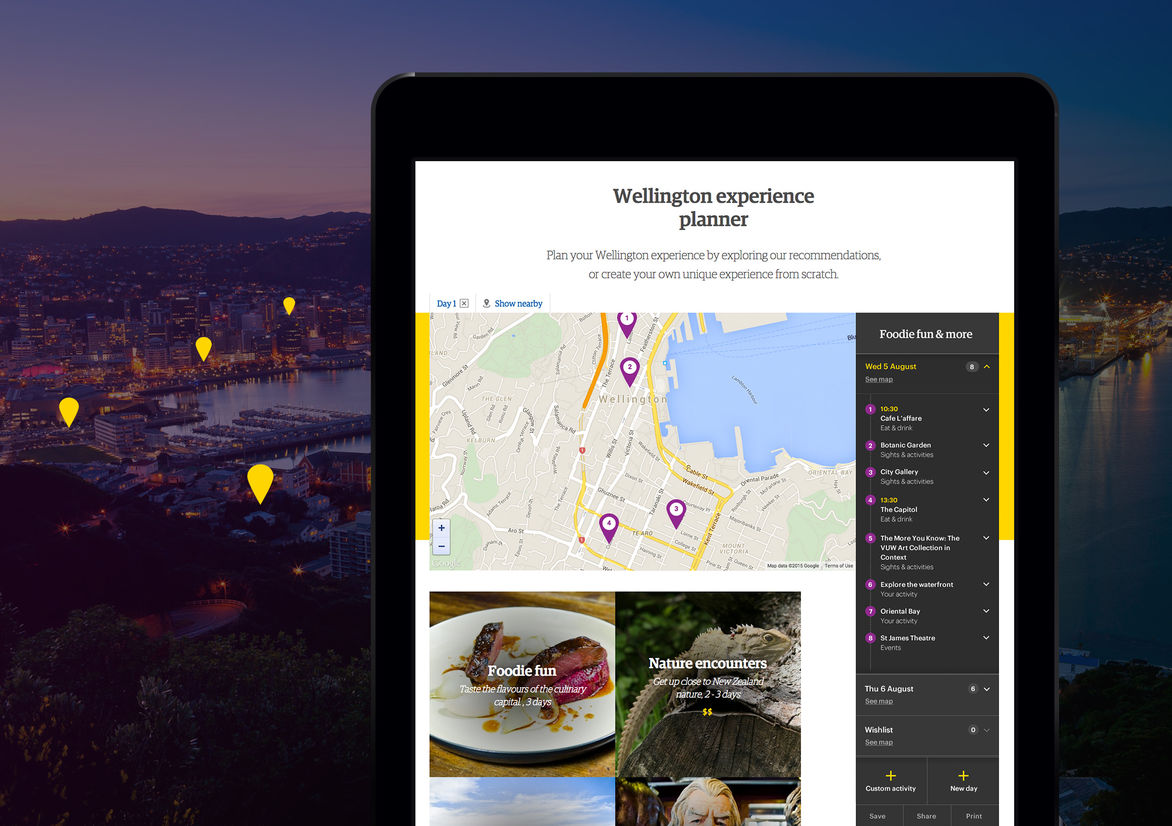 Digital Digital Campaigns Digital Products E-Commerce Websites (new 2024) Game Design Installation & Exhibition Large Scale Websites Small Scale Websites Student Digital User Experience (archived 2022) Animation Digital — formerly Interactive (2010–2019) Film Graphic Moving Image (archived 2025) Product Social Good Award Spatial Toitanga Value of Design Award User Experience Award (archived 2019) All categories Digital Campaigns Digital Products E-Commerce Websites (new 2024) Game Design Installation & Exhibition Large Scale Websites Small Scale Websites Student Digital User Experience (archived 2022) All years 2025 2024 2023 2022 2021 2020 2019 2018 2017 2016 2015 2014 2013 2012 2011 2010 Studio A-Z DNA 79 Adventure Planner 2015 Large Scale Websites Credits Pou Auaha / Creative Director Stacey Orr Ngā Kaimahi / Team Members Chiara Monteleone, Idris Corap, James Ayers, Kerry Gibbs Client Positively Wellington Tourism