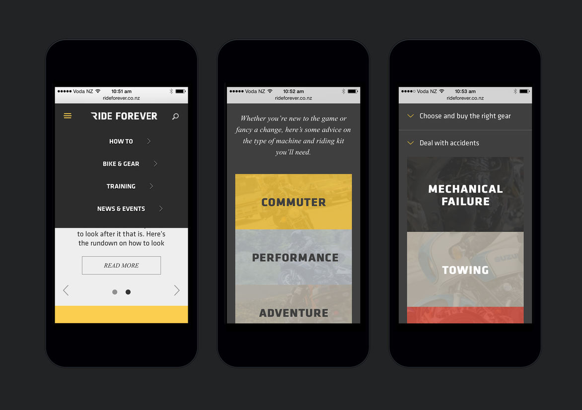 Digital Digital Campaigns Digital Products E-Commerce Websites (new 2024) Game Design Installation & Exhibition Large Scale Websites Small Scale Websites Student Digital User Experience (archived 2022) Animation Digital — formerly Interactive (2010–2019) Film Graphic Moving Image (archived 2025) Product Social Good Award Spatial Toitanga Value of Design Award User Experience Award (archived 2019) All categories Digital Campaigns Digital Products E-Commerce Websites (new 2024) Game Design Installation & Exhibition Large Scale Websites Small Scale Websites Student Digital User Experience (archived 2022) All years 2025 2024 2023 2022 2021 2020 2019 2018 2017 2016 2015 2014 2013 2012 2011 2010 Studio A-Z DNA 79 rideforever.co.nz Finalist 2014 Large Scale Websites Credits Ringatoi Matua / Design Director Stacey Orr Ngā Kaimahi / Team Members Kristin Jarvis, Zakary Kinnaird, Chiara Monteleone, Idris Corap Client ACC