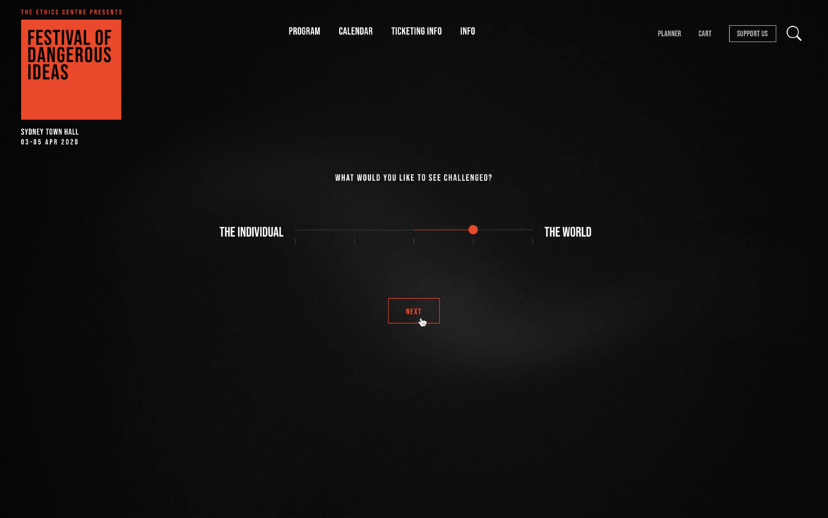 Digital Digital Campaigns Digital Products E-Commerce Websites (new 2024) Game Design Installation & Exhibition Large Scale Websites Small Scale Websites Student Digital User Experience (archived 2022) Animation Digital — formerly Interactive (2010–2019) Film Graphic Moving Image (archived 2025) Product Social Good Award Spatial Toitanga Value of Design Award User Experience Award (archived 2019) All categories Digital Campaigns Digital Products E-Commerce Websites (new 2024) Game Design Installation & Exhibition Large Scale Websites Small Scale Websites Student Digital User Experience (archived 2022) All years 2025 2024 2023 2022 2021 2020 2019 2018 2017 2016 2015 2014 2013 2012 2011 2010 Studio A-Z ED. 20 Festival of Dangerous Ideas Finalist 2020 Large Scale Websites Credits Ringatoi Matua / Design Director Klara Ahlin Ngā Kaimahi / Team Members Daniel Lever, Bec Ashmore Kaitautoko / Contributor Glider