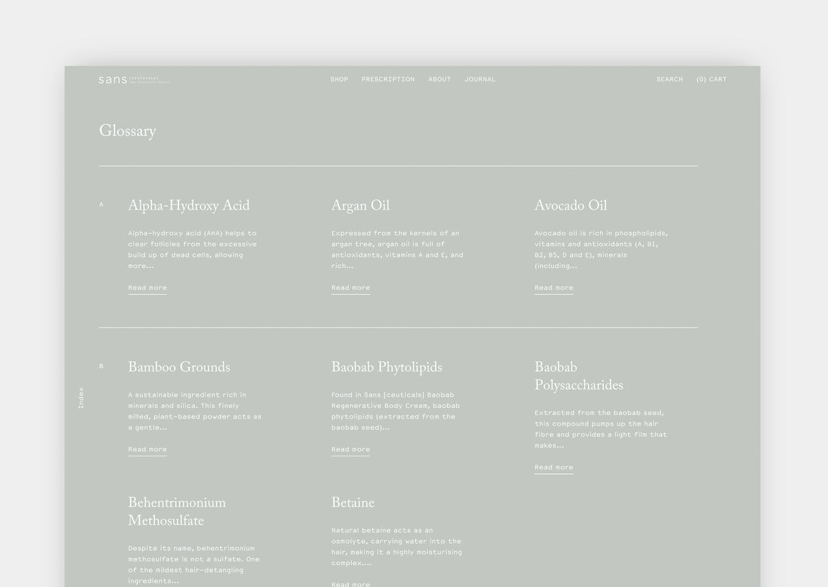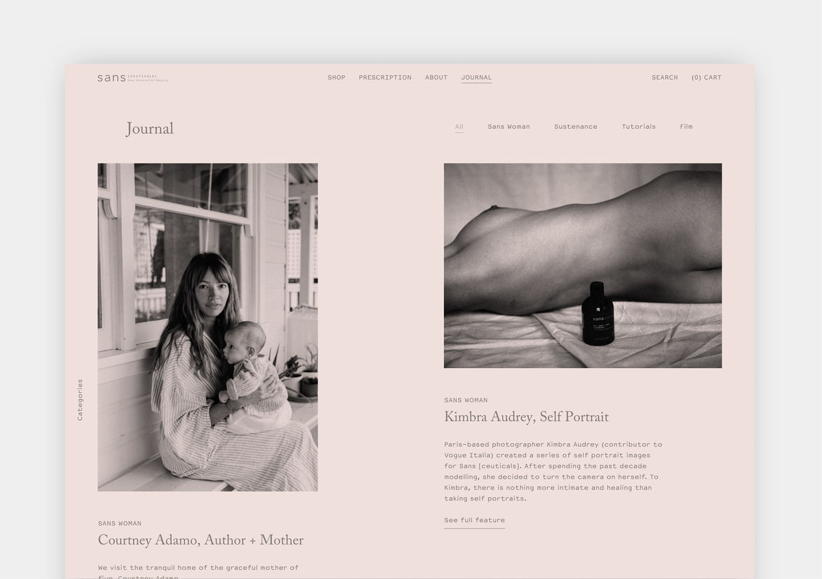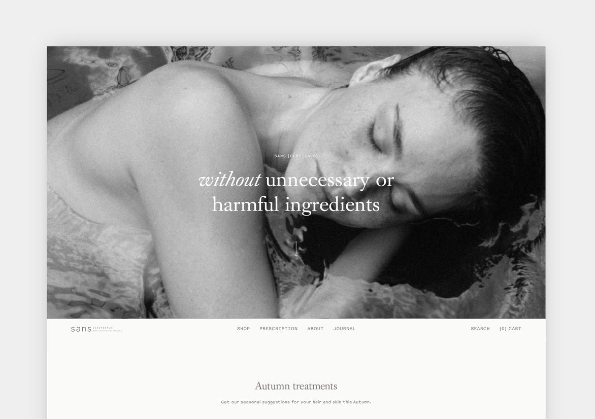 Digital Digital Campaigns Digital Products E-Commerce Websites (new 2024) Game Design Installation & Exhibition Large Scale Websites Small Scale Websites Student Digital User Experience (archived 2022) Animation Digital — formerly Interactive (2010–2019) Film Graphic Moving Image (archived 2025) Product Social Good Award Spatial Toitanga Value of Design Award User Experience Award (archived 2019) All categories Digital Campaigns Digital Products E-Commerce Websites (new 2024) Game Design Installation & Exhibition Large Scale Websites Small Scale Websites Student Digital User Experience (archived 2022) All years 2025 2024 2023 2022 2021 2020 2019 2018 2017 2016 2015 2014 2013 2012 2011 2010 Studio A-Z General Studios 8 Sans Ceuticals Finalist 2017 Large Scale Websites Credits Pou Auaha / Creative Director Josh Wong Ngā Kaimahi / Team Members Nicole Smith, Brad Robinson, Matt Nicoll, Josh Wong Client Sans Ceuticals