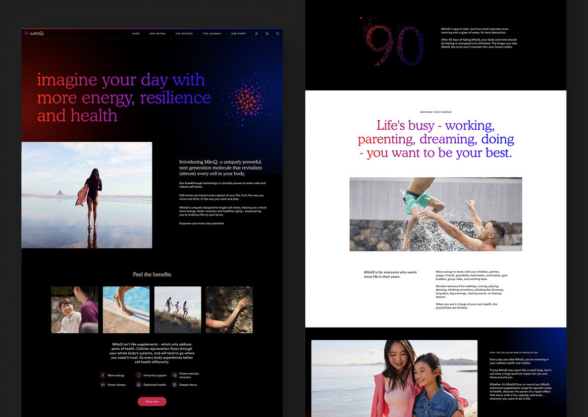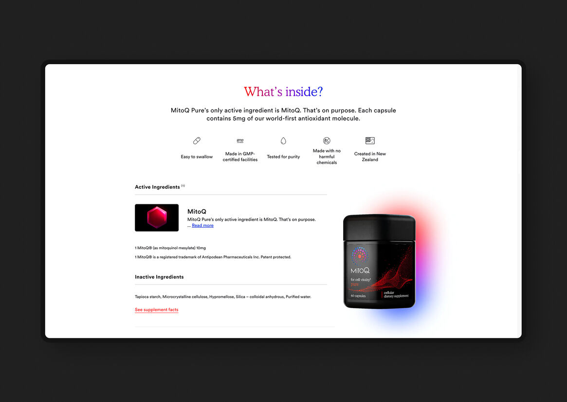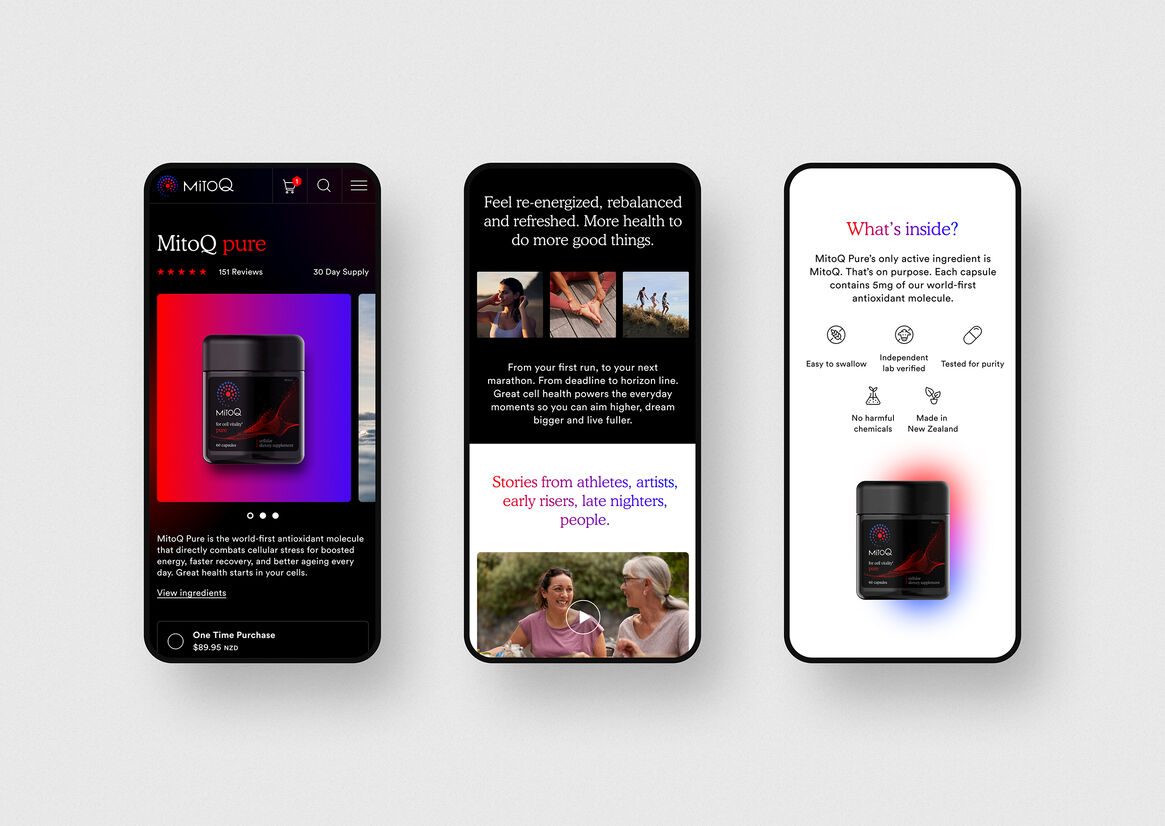 We collaborated closely with MitoQ and their brand agency Born Ugly to reimagine the MitoQ digital experience from the ground up.