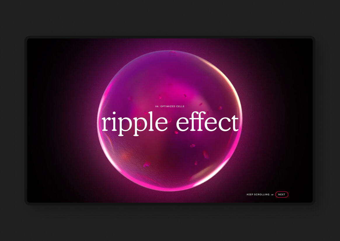 Communicating MitoQ’s brand story of energy and positivity radiating outwards in a ripple effect from the individual to the wider community was a core aim for us, and we wanted the entire site to have this feeling in the way it looks and feels.