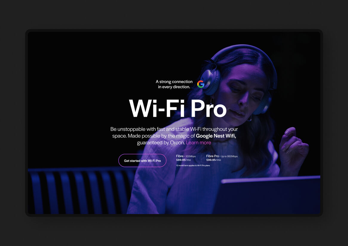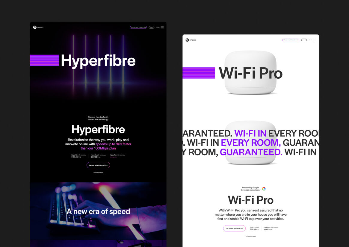 The result is a beautiful, memorable online brand experience that delivers functionally on the Orcon brand promise of premium, customisable internet services for the future of how Kiwis work, live and play.