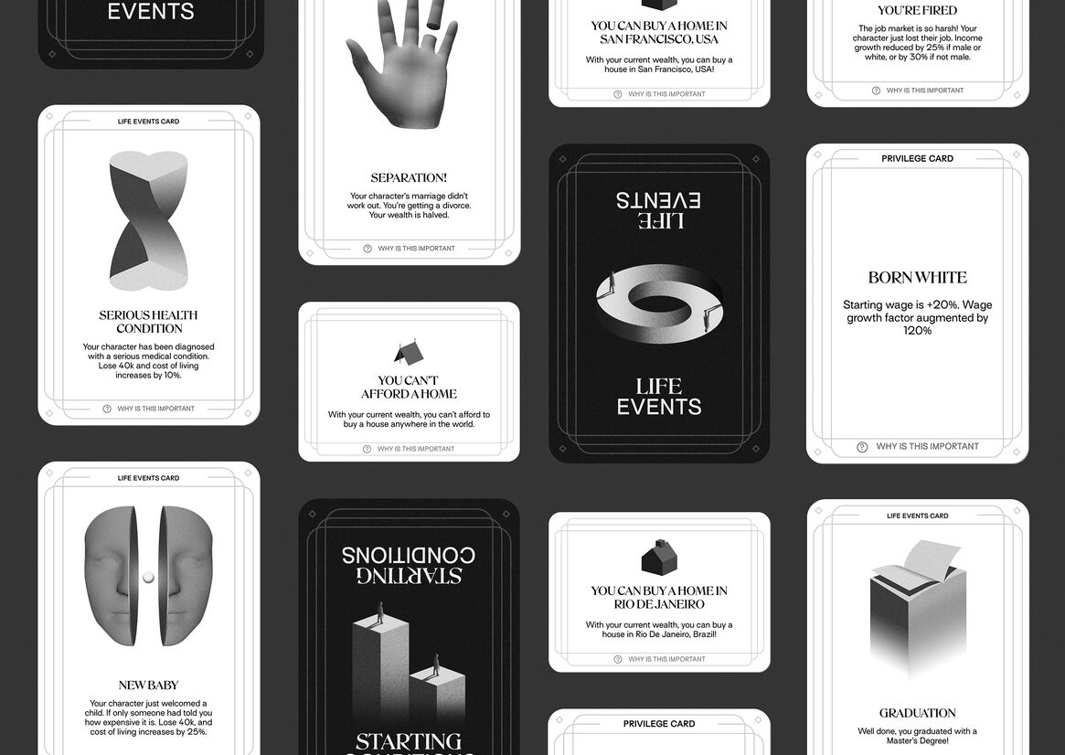 The anchor experience of Act I is a programmatic Game of Life developed specifically for the project. A demonstration of how chance of birth and life events impact an individual’s earning potential, the game uses real research data to generate a life that unfolds as the user scrolls (Scroll-driven interaction was deliberately chosen for intuitive accessibility). Each experience generates a different story.