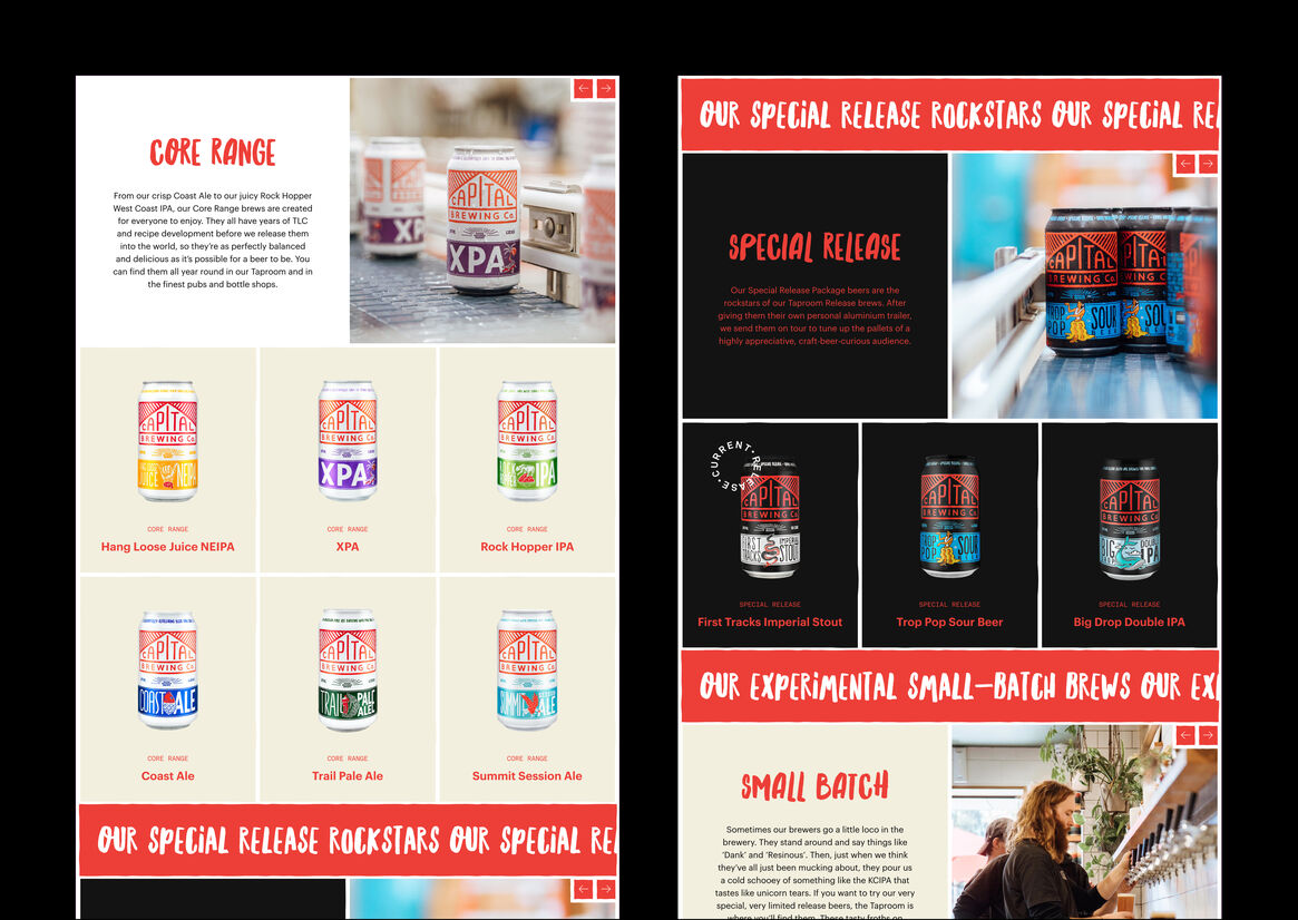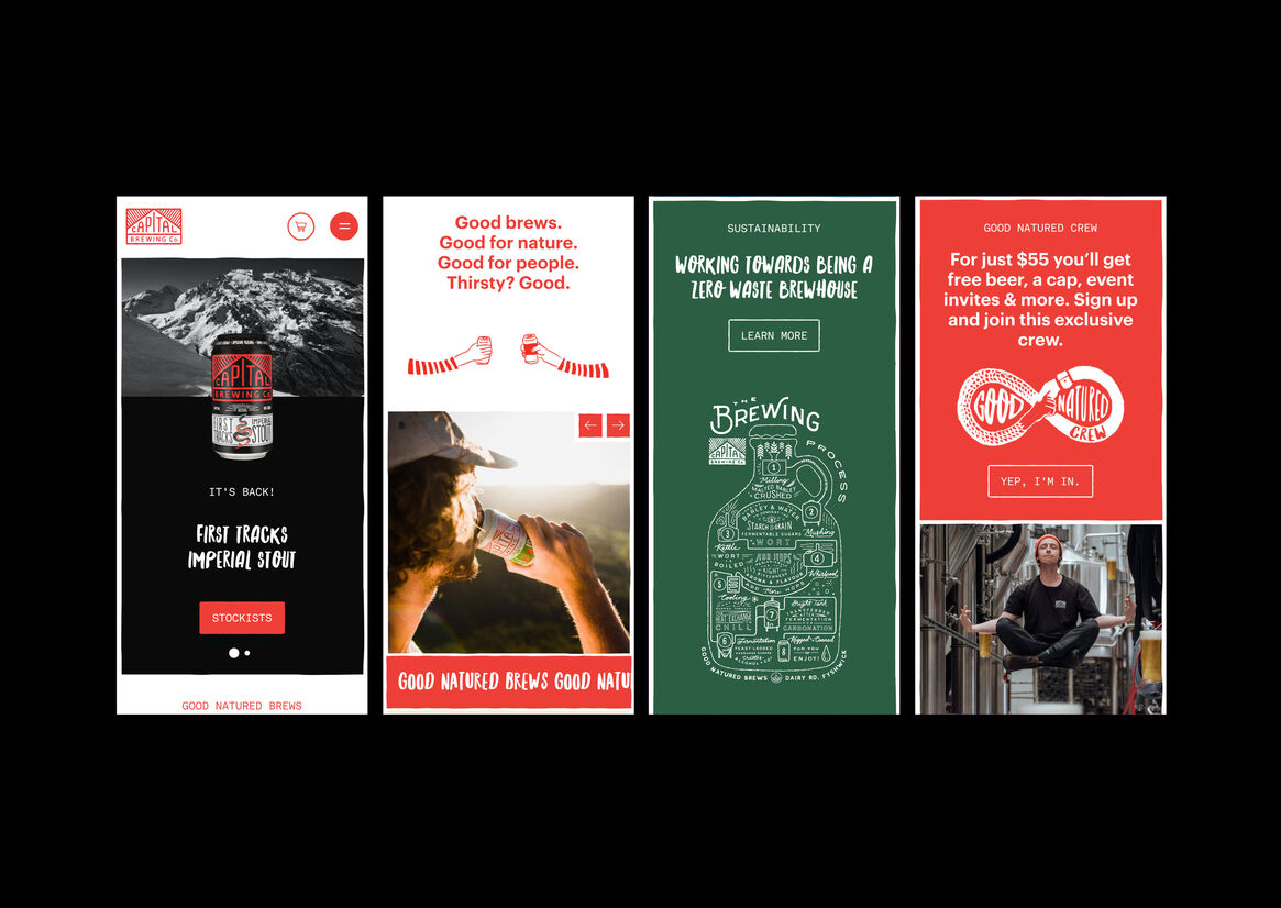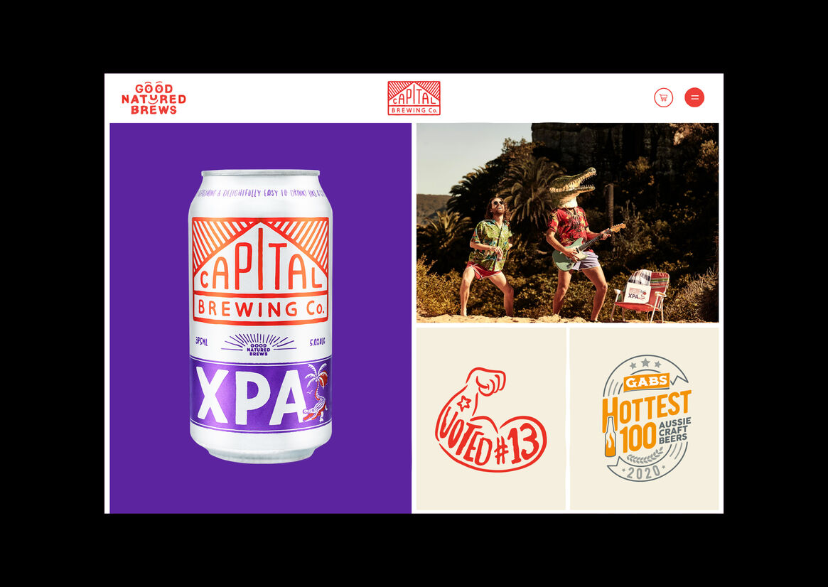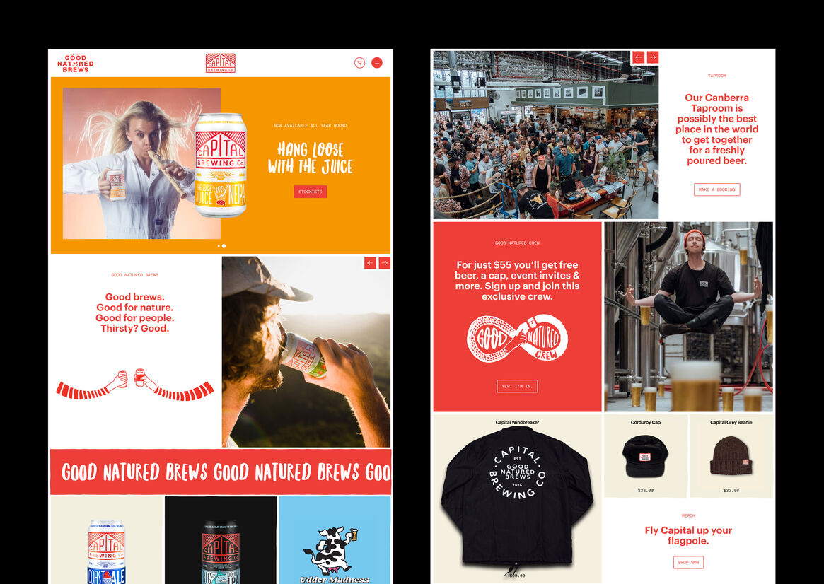 Capital Brewing Co. is a 100% independently employee-owned brewery and hospitality venue in Canberra, founded by a close group of mates who froth delicious brews, surfing waves and good vibes. They brew a range of craft beers that everyone can enjoy, not just beer aficionados with hop crumbs in their moustaches. Capital is passionate about producing great brews, building a community and demonstrating leadership in environmental sustainability. ‘Good Natured Brews’ is the ethos that informs all aspects of the brand. Being good natured means everything from treating employees and the planet with care and respect, to giving back to the local community that has supported them. ‘Good Natured’ is the lens through which we approached the website rebuild.
