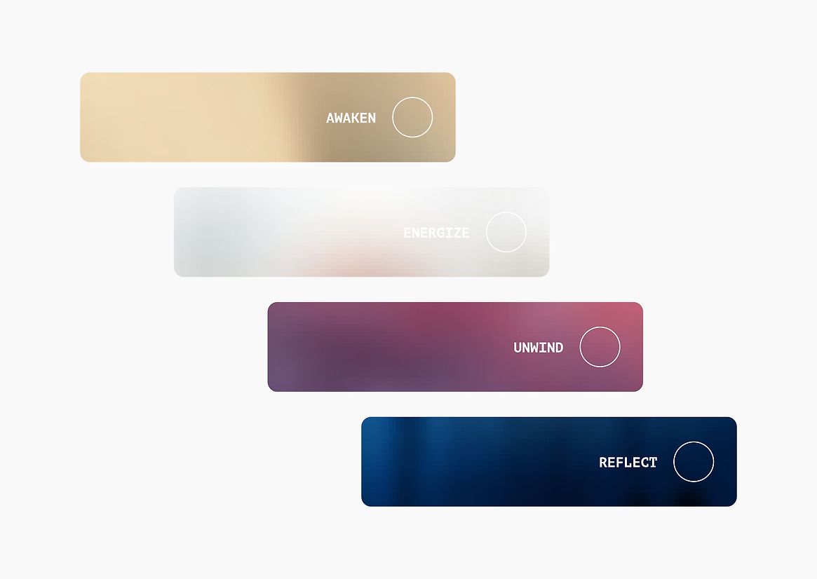 Inspired by MLP’s tagline ‘Light at work, Light at play’, we defined four mood states – awaken, energise, unwind and reflect – to create distinct experiences. At a click, the interface changes depending on the user’s desired mood. Using the screen as a source, it subtly puts light and colour psychology into action, demonstrating how creativity influences emotion across real and digital spaces.
