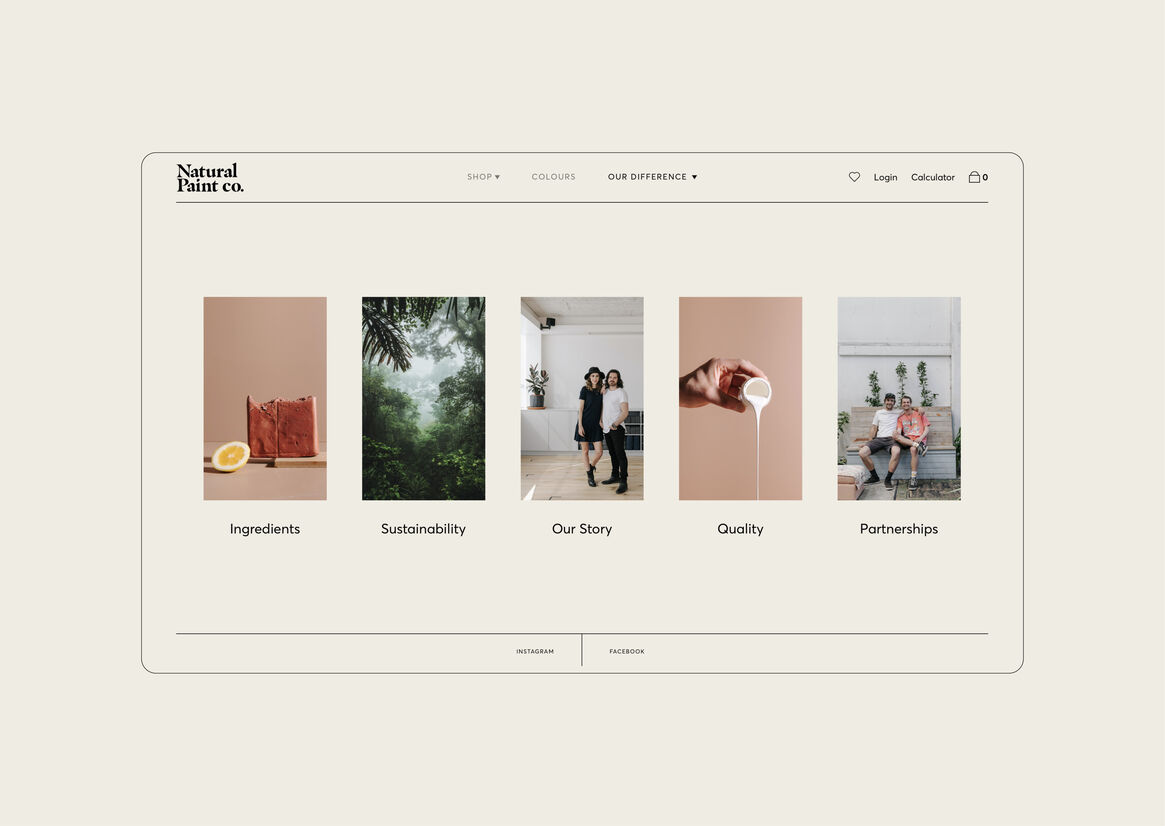 Alongside the core shopping experience, the 'Home' and 'Our Difference' sections were designed to reflect Natural Paint Co’s focus on both sustainability and high-quality products. These pages included rich imagery of New Zealand nature and high-quality photographs of the Natural Paint Co team and their amazing customers.