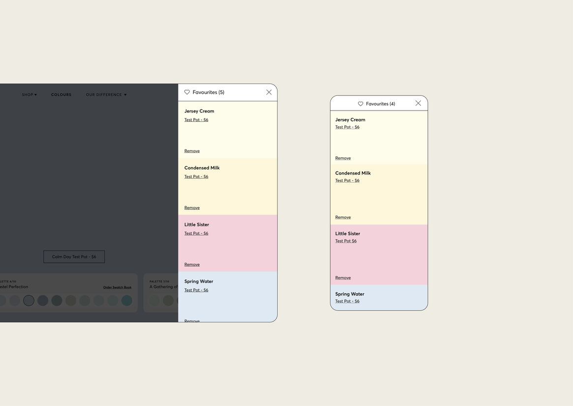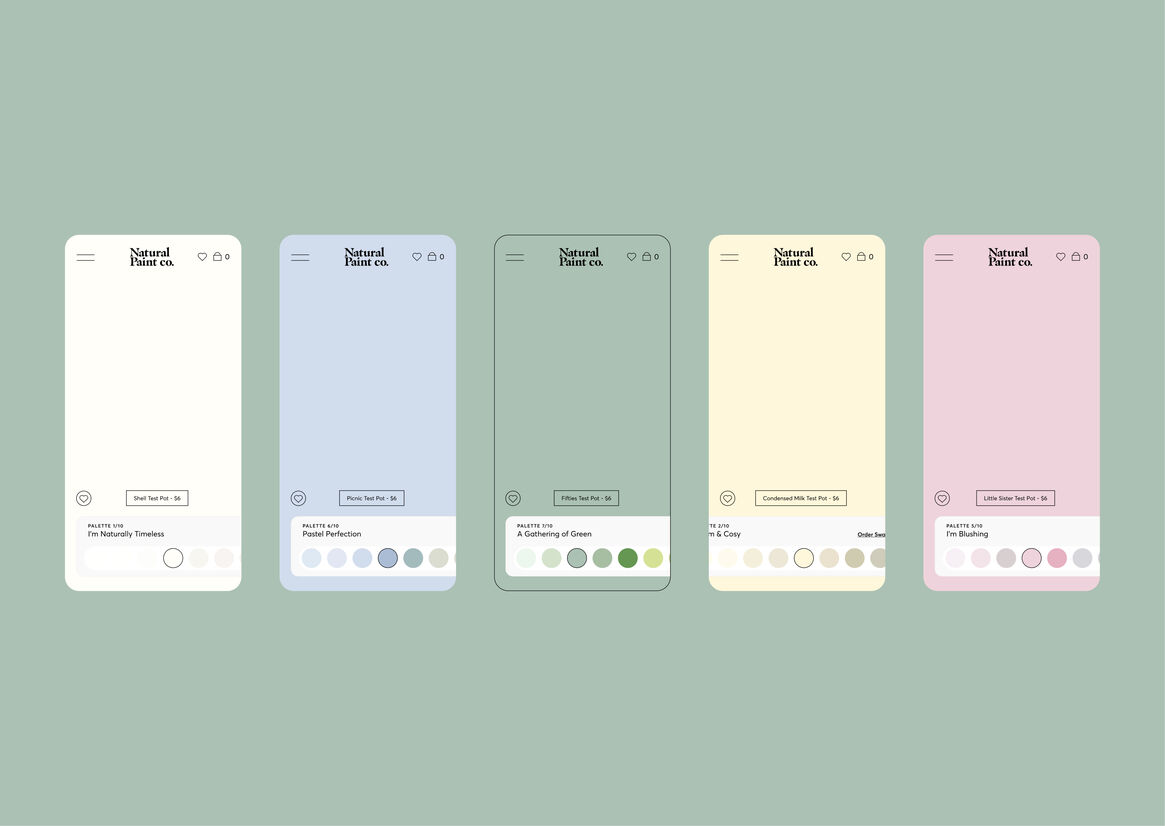 Through several rounds of prototyping, we created an ultra-simple colour browsing experience which allows users to seamlessly browse Natural Paint Co’s entire colour range, curate their favourites and order their chosen products.