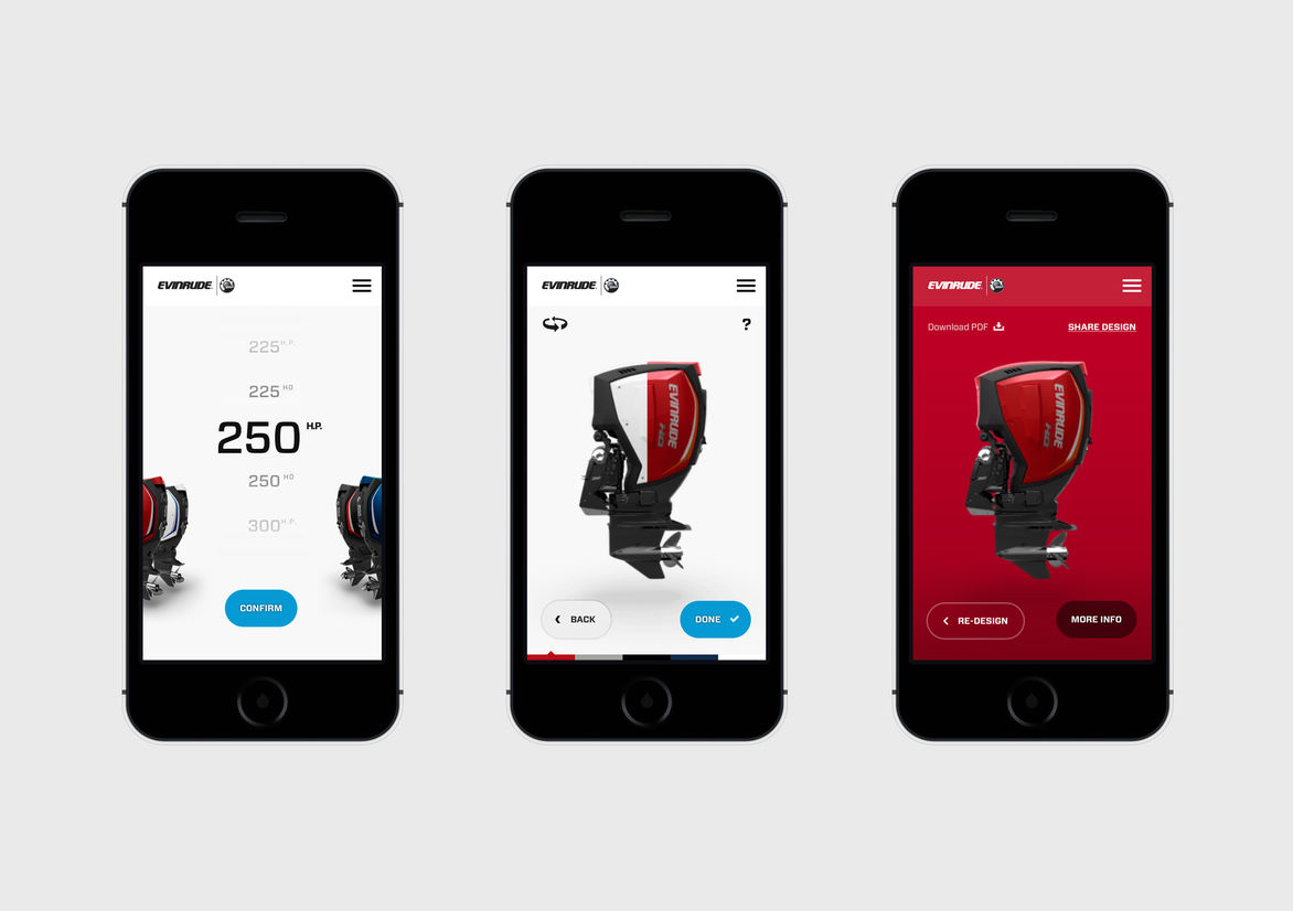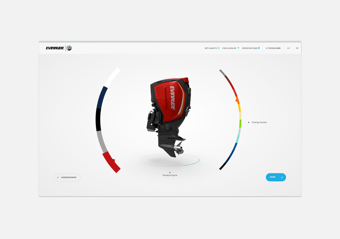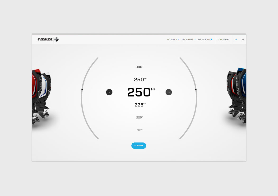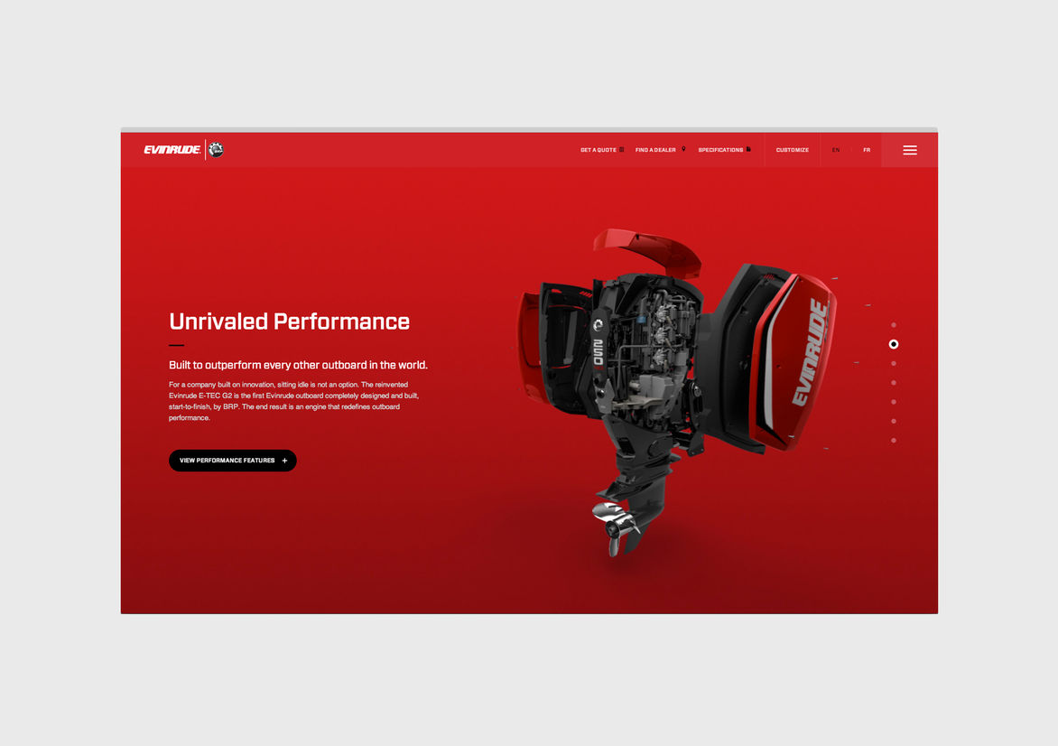 Technology brochureware done right, for a new line of outboard motors. Craft and detailed flourishes abound.