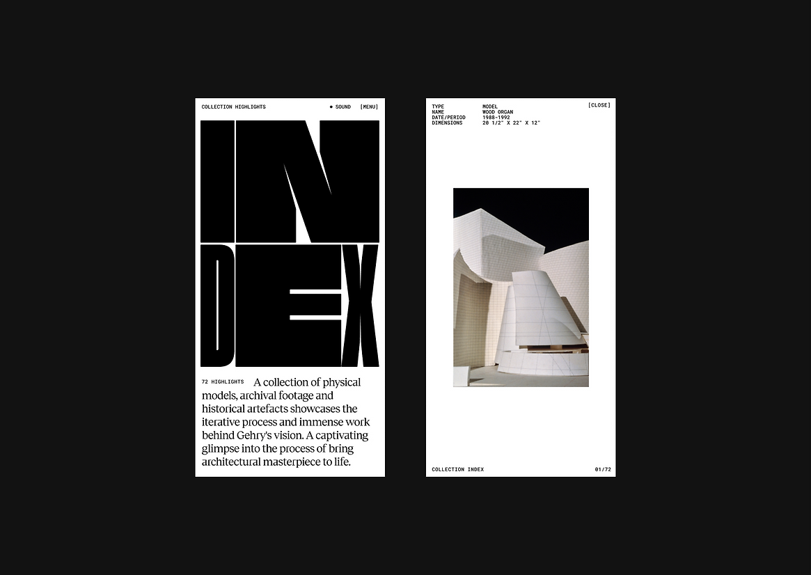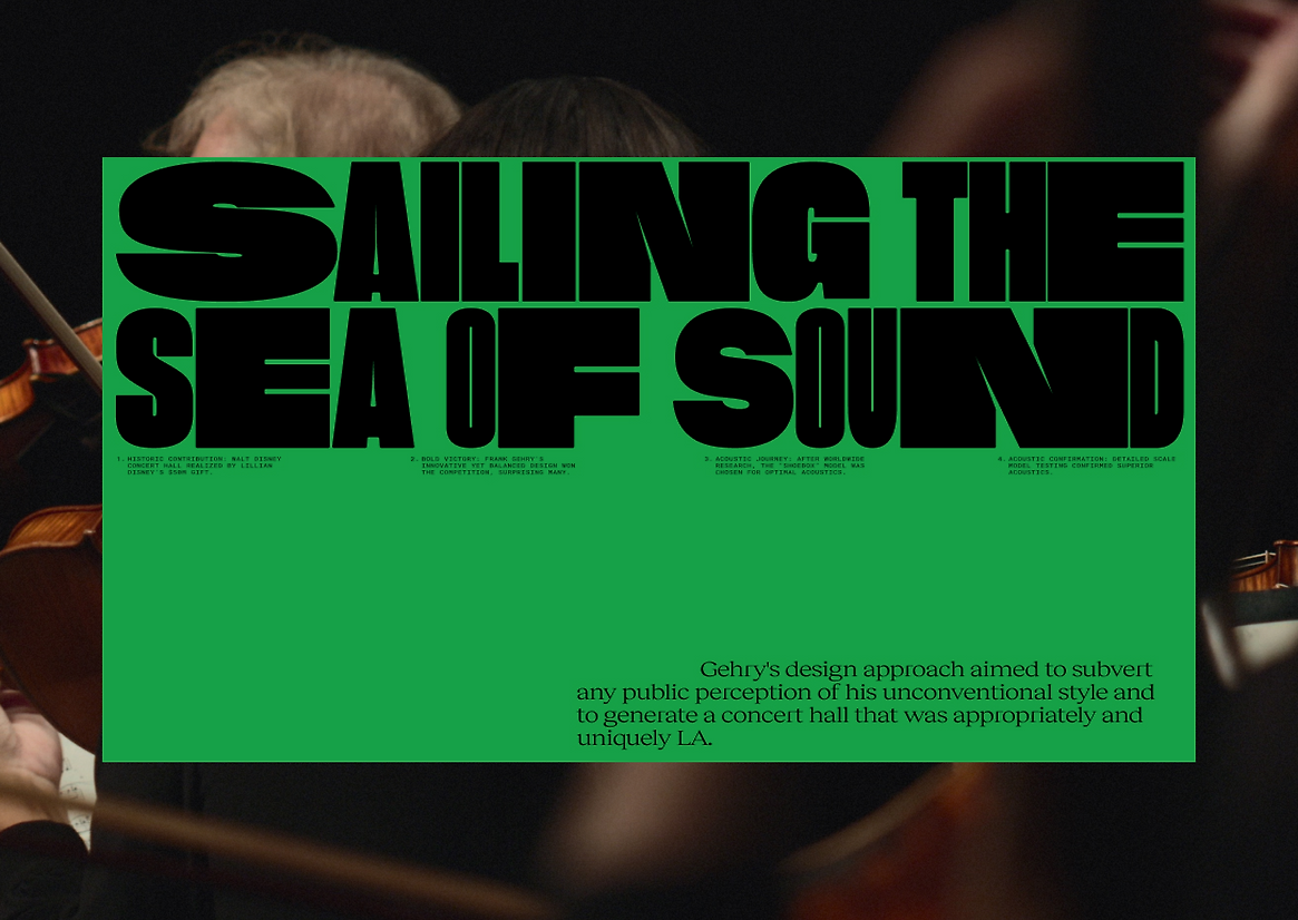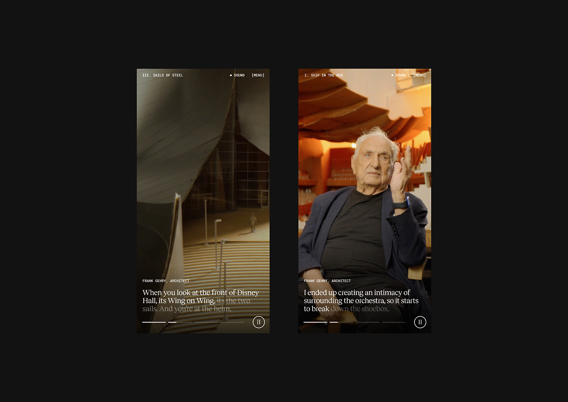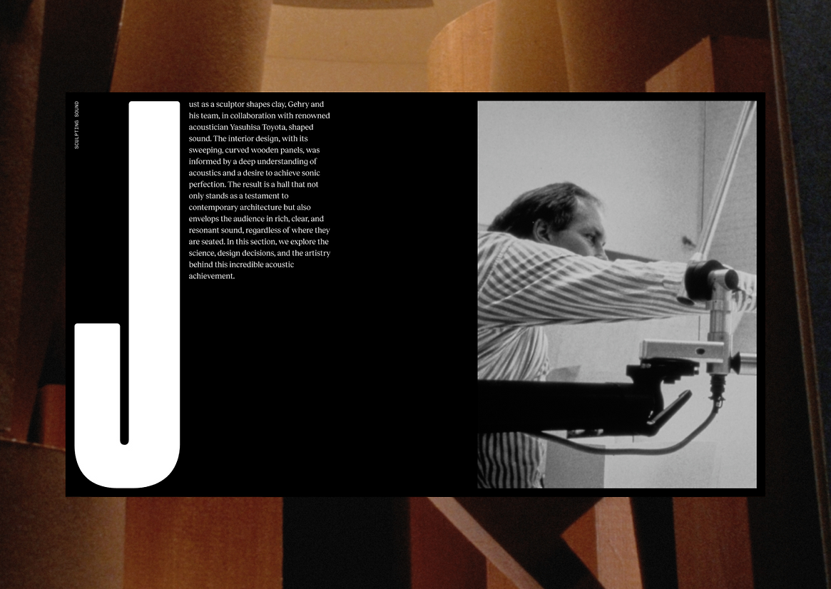 To celebrate the 20th Anniversary of Frank Gehry's Walt Disney Concert Hall, Getty partnered with Resn to create Sculpting Harmony, an interactive exhibition that offers a behind-the-scenes look at this cultural masterpiece. Featuring a vast array of Getty’s archival materials, interactive 3D renderings, stunning aerial photography, a symphonic soundtrack, and new scholarship, Sculpting Harmony delves deep into the creative process behind the concert hall. Compelling new interviews with Frank Gehry reveal the insights, inspirations, and innovative techniques that shaped the hall's unique form. Visitors can explore the exhibition through the website's rich content, which documents the hall’s design and construction. Combining Getty's scholarship with Resn's interactive expertise, Sculpting Harmony creates an engaging platform that educates and inspires, providing a deeper appreciation for the architectural genius behind this iconic structure.