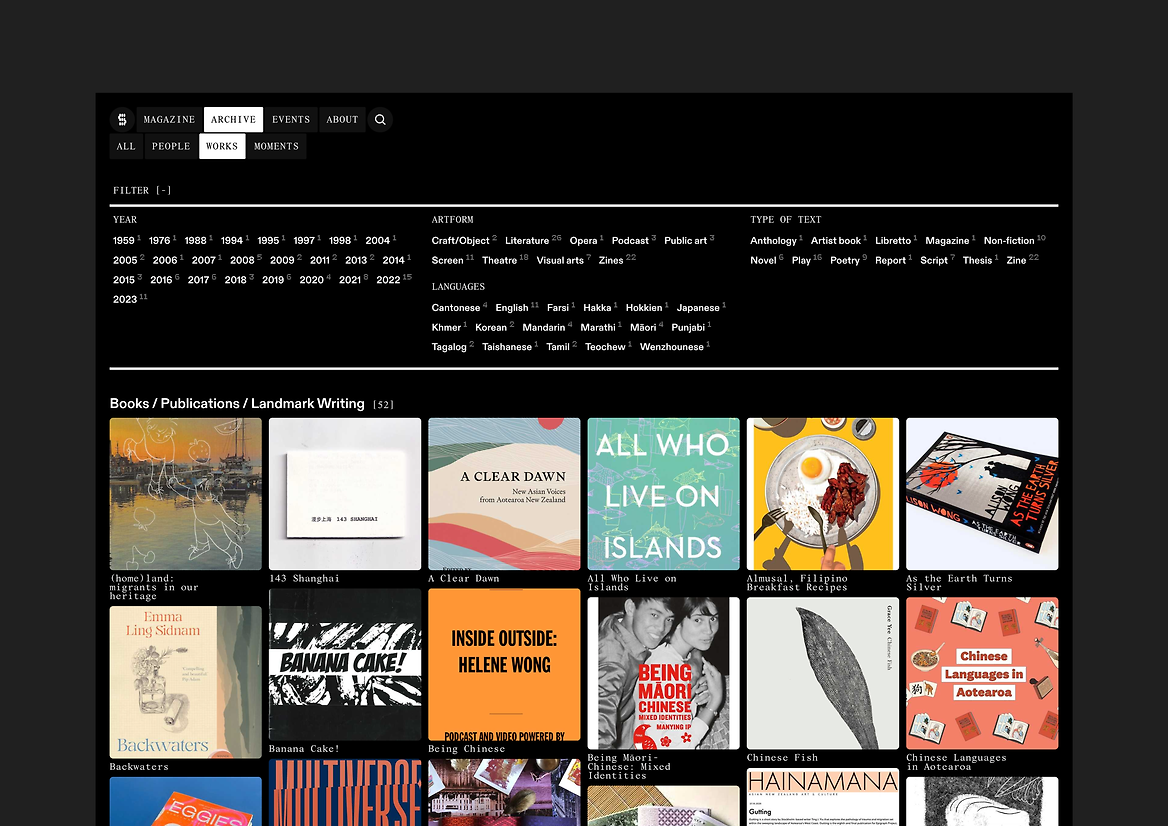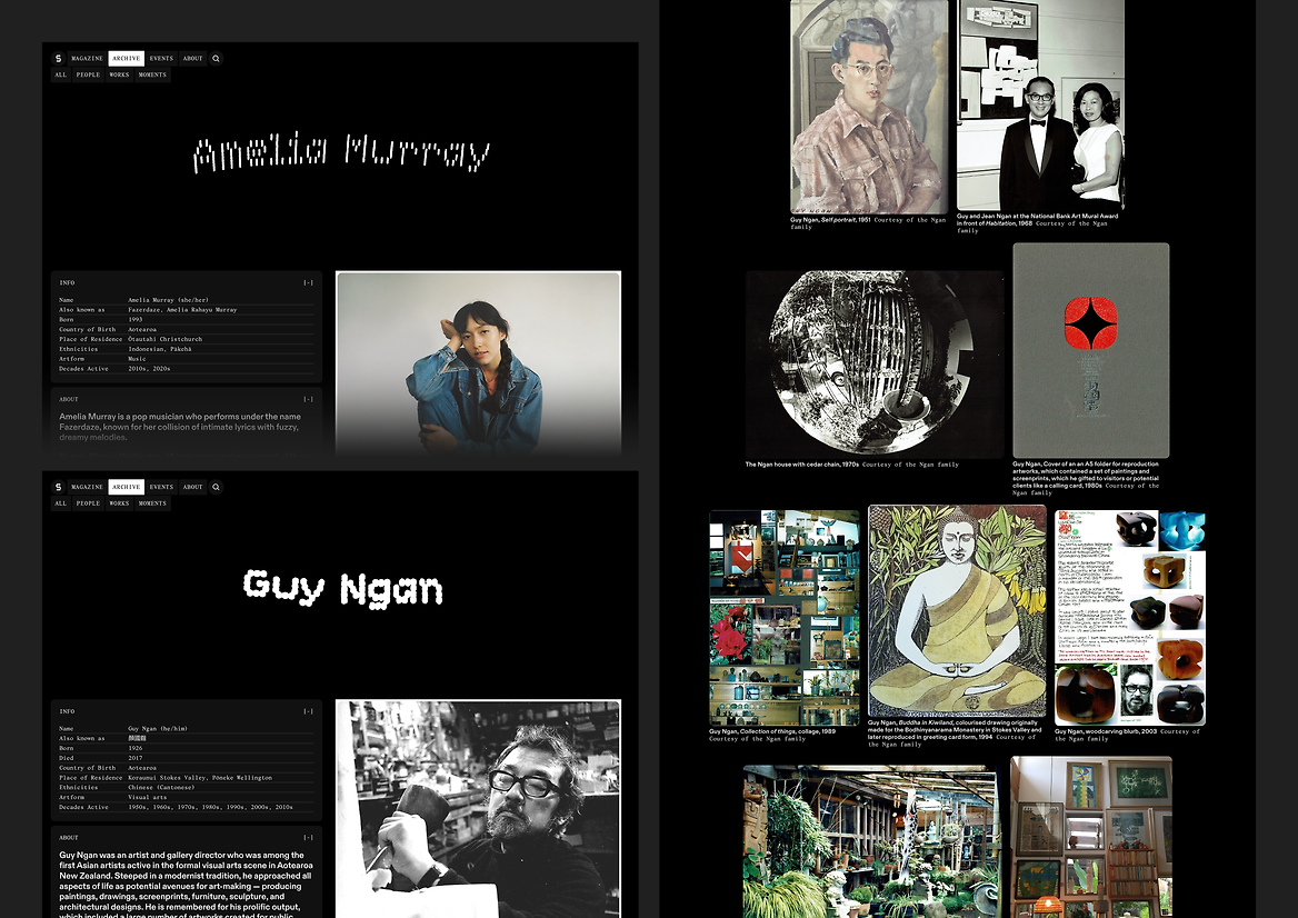 Finally, the website employs a smart search function that is a result of a close collaboration with the client’s archival team, smart use of database queries and some frontend code magic. Both the search and filter features allow for many ‘entryways’ into a large and complex archive that will only grow in detail and size over time. The concept is that the more metadata connections that are added over time, the more valuable these search and filtering functions become, allowing for unique connections to be made across the history of Asian Aotearoa diaspora — whether it’s Chinese heritage dancers active in the 2010s or Stokes Valley sculptors in the 1960s. The CMS also allows editors and archivists to explicitly create connections between items within the archive, adding another layer of interconnectedness for users to discover.