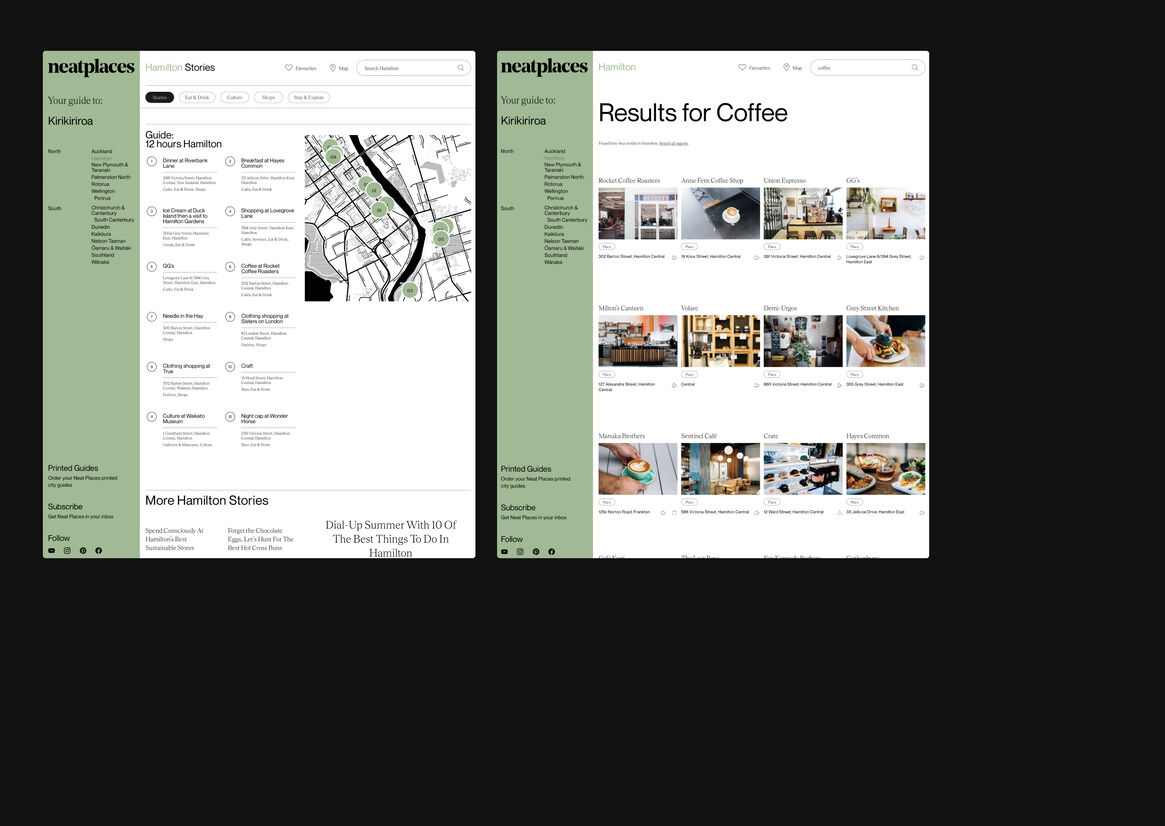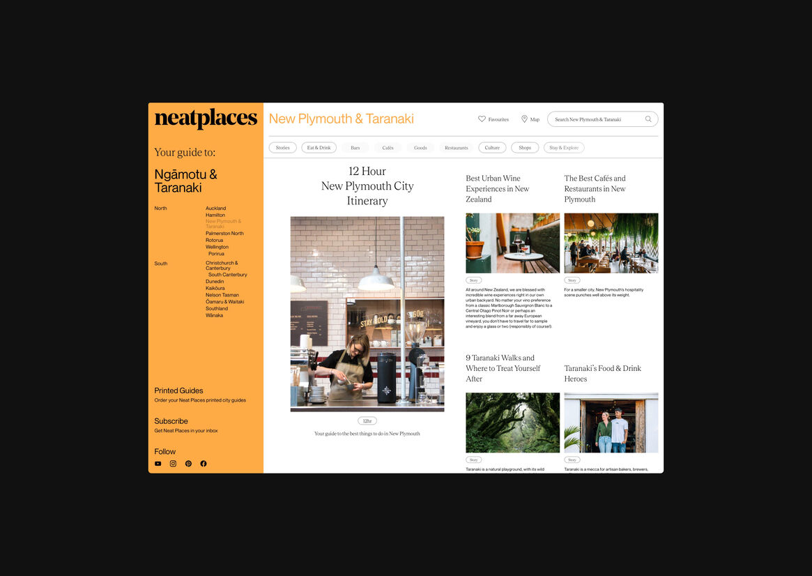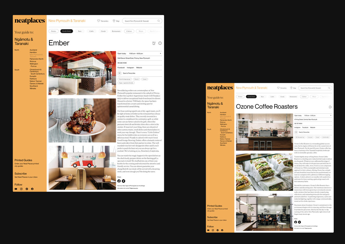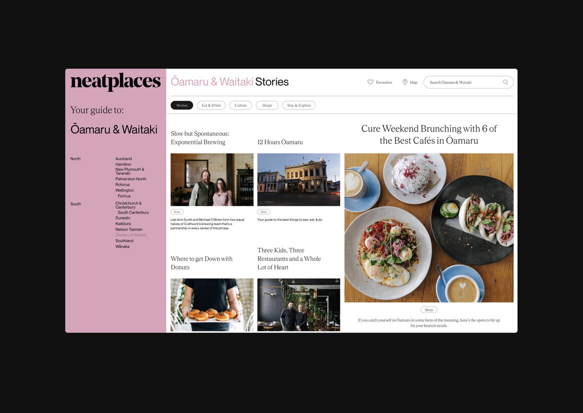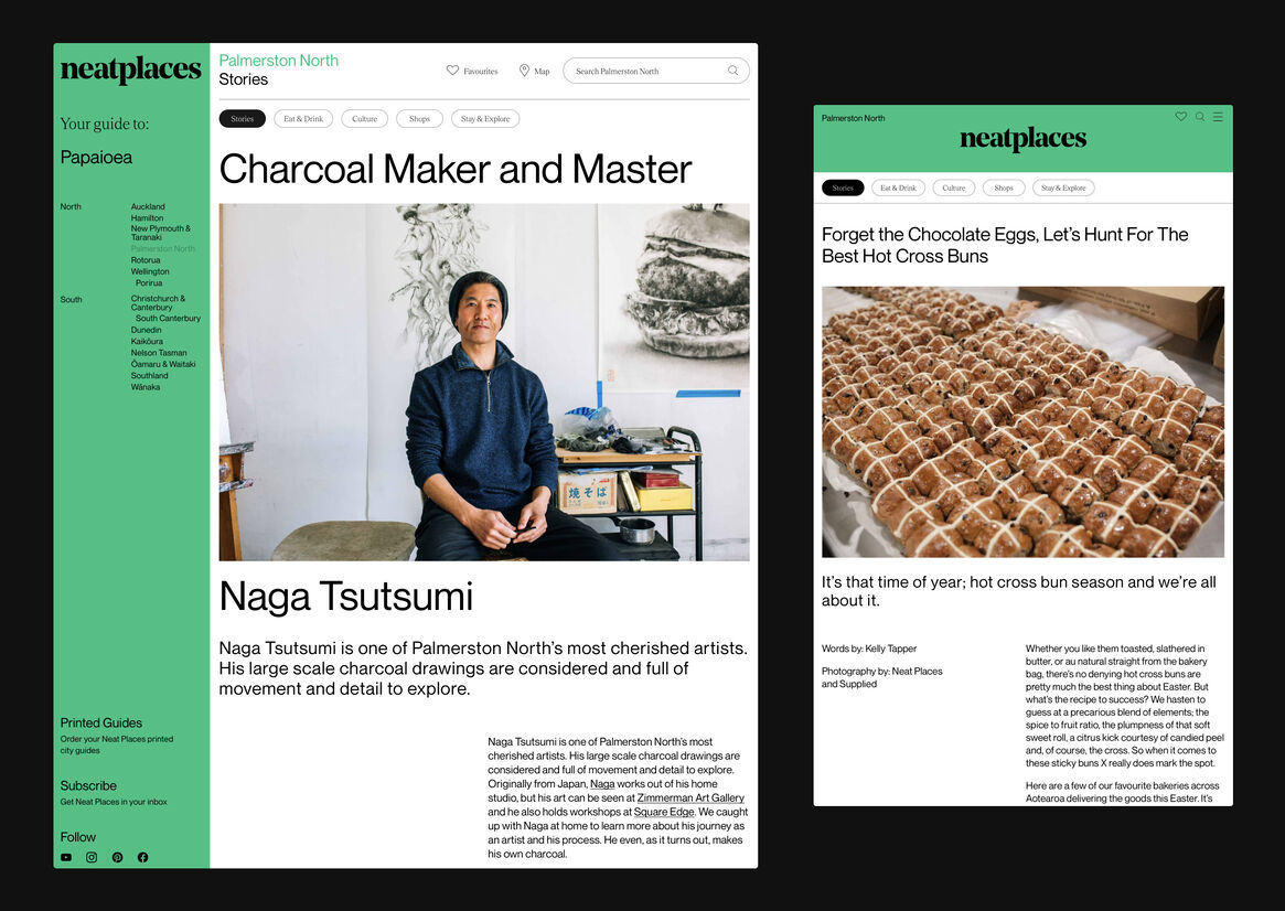 Digital Digital Campaigns Digital Products E-Commerce Websites (new 2024) Game Design Installation & Exhibition Large Scale Websites Small Scale Websites Student Digital User Experience (archived 2022) Animation Digital — formerly Interactive (2010–2019) Film Graphic Moving Image (archived 2025) Product Social Good Award Spatial Toitanga Value of Design Award User Experience Award (archived 2019) All categories Digital Campaigns Digital Products E-Commerce Websites (new 2024) Game Design Installation & Exhibition Large Scale Websites Small Scale Websites Student Digital User Experience (archived 2022) All years 2025 2024 2023 2022 2021 2020 2019 2018 2017 2016 2015 2014 2013 2012 2011 2010 Studio A-Z Sons & Co. 137 Neat Places 2022 Large Scale Websites Credits Pou Auaha / Creative Director Timothy Kelleher Ngā Kaimahi / Team Members Matthew Arnold, Paul Bright, Richard Han Kaitautoko / Contributor Scott Bolton Client Neat Places