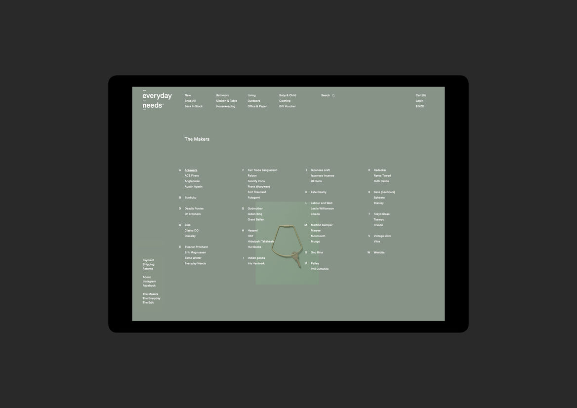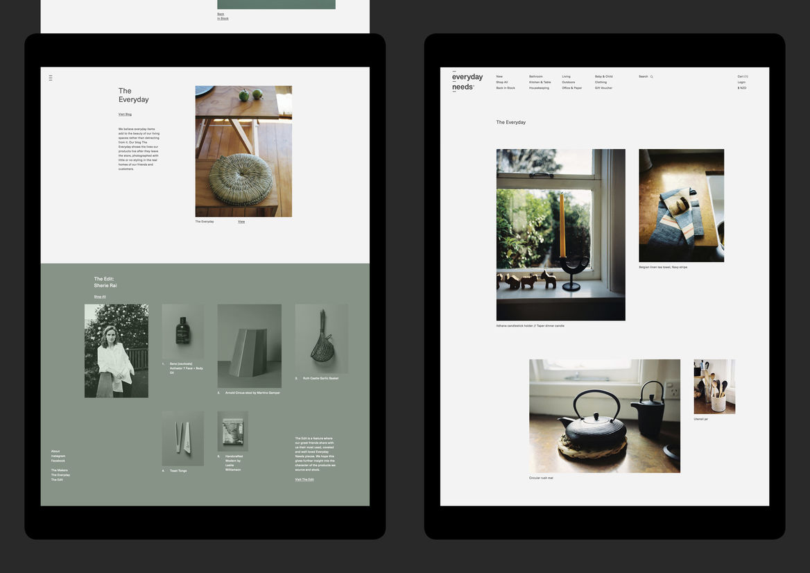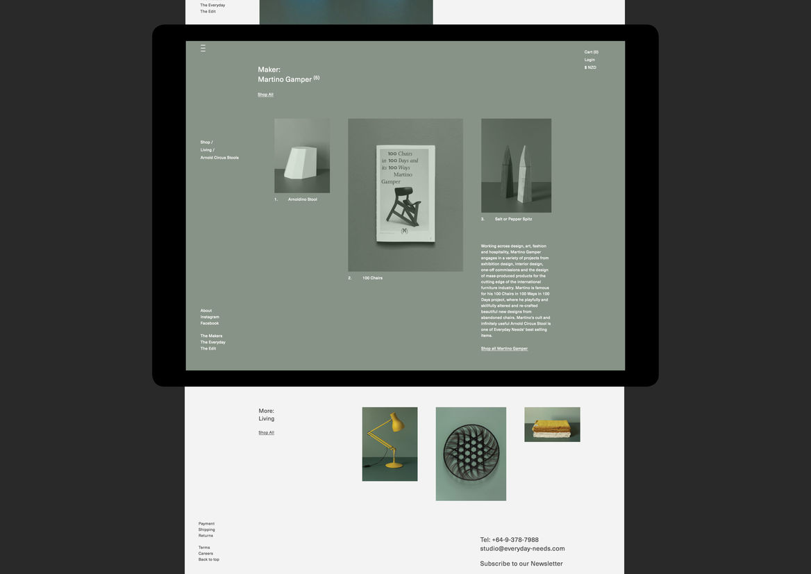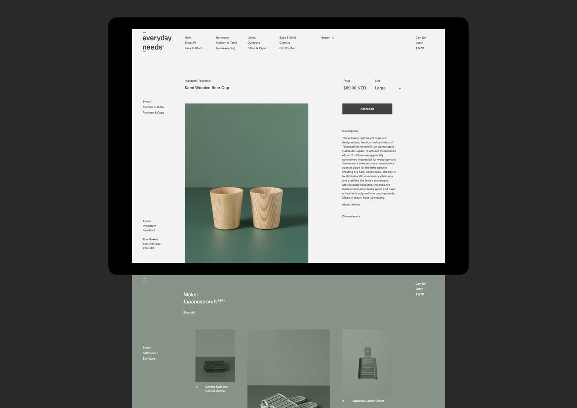 Digital Digital Campaigns Digital Products E-Commerce Websites (new 2024) Game Design Installation & Exhibition Large Scale Websites Small Scale Websites Student Digital User Experience (archived 2022) Animation Digital — formerly Interactive (2010–2019) Film Graphic Moving Image (archived 2025) Product Social Good Award Spatial Toitanga Value of Design Award User Experience Award (archived 2019) All categories Digital Campaigns Digital Products E-Commerce Websites (new 2024) Game Design Installation & Exhibition Large Scale Websites Small Scale Websites Student Digital User Experience (archived 2022) All years 2025 2024 2023 2022 2021 2020 2019 2018 2017 2016 2015 2014 2013 2012 2011 2010 Studio A-Z 1/1 Studio 12 Everyday Needs 2018 Small Scale Websites Credits Pou Auaha / Creative Director Natasha Mead Ngā Kaimahi / Team Members Natasha Mead, Natalie Thomson, Joe Swann Kaitautoko / Contributor Neeve Woodward Client Everyday Needs