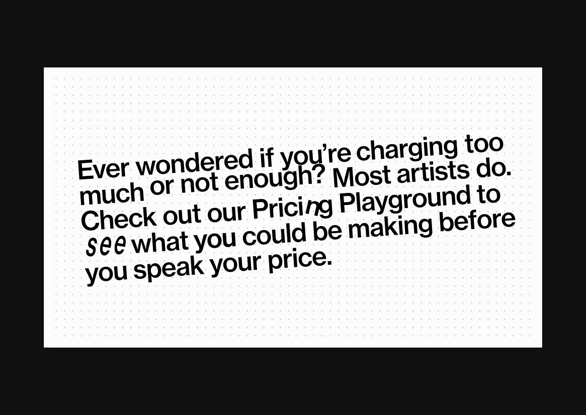 Base was approached by Jacky Winter to develop a brand position, identity and digital platform in support of their new ad-hoc artist representation platform—pulling back the curtain on the traditional artist/agent/client relationship, centering artists, and prioritising their needs.