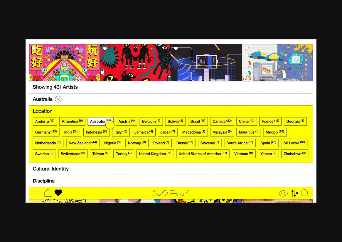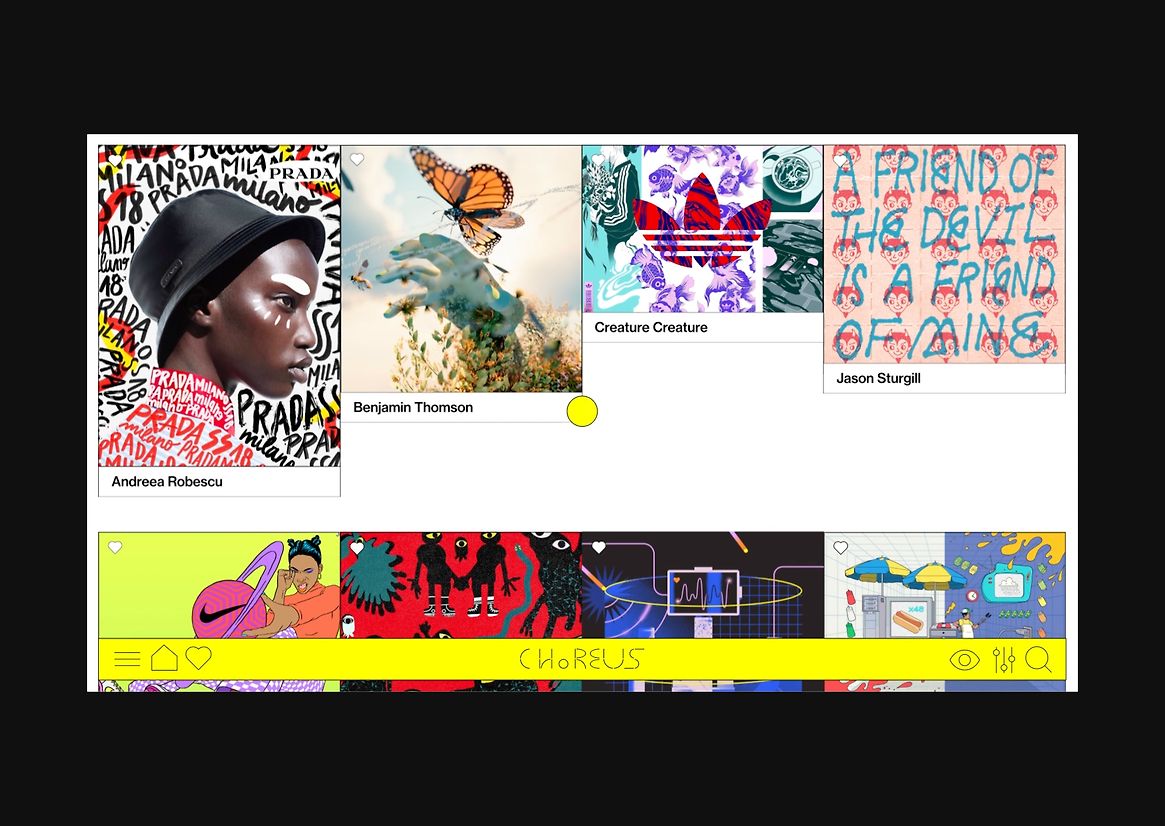 The new website interface embodies Choreus’ DIY spirit and upstart nature – a significant departure from the aesthetic conventions of Jacky Winter stable of brands. Modular, unembellished, and function-forward, artists and artworks are prioritised by a lightweight UI that evolves and recedes when necessary, enabling a fast and intuitive user experience.